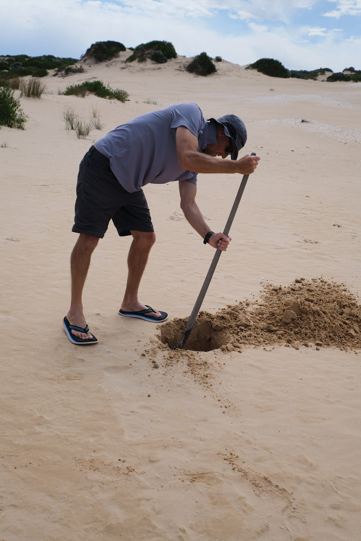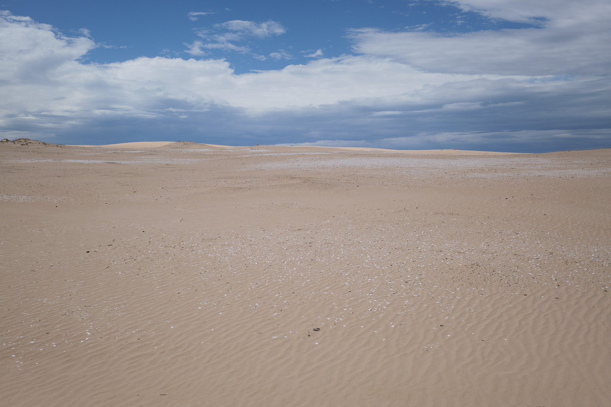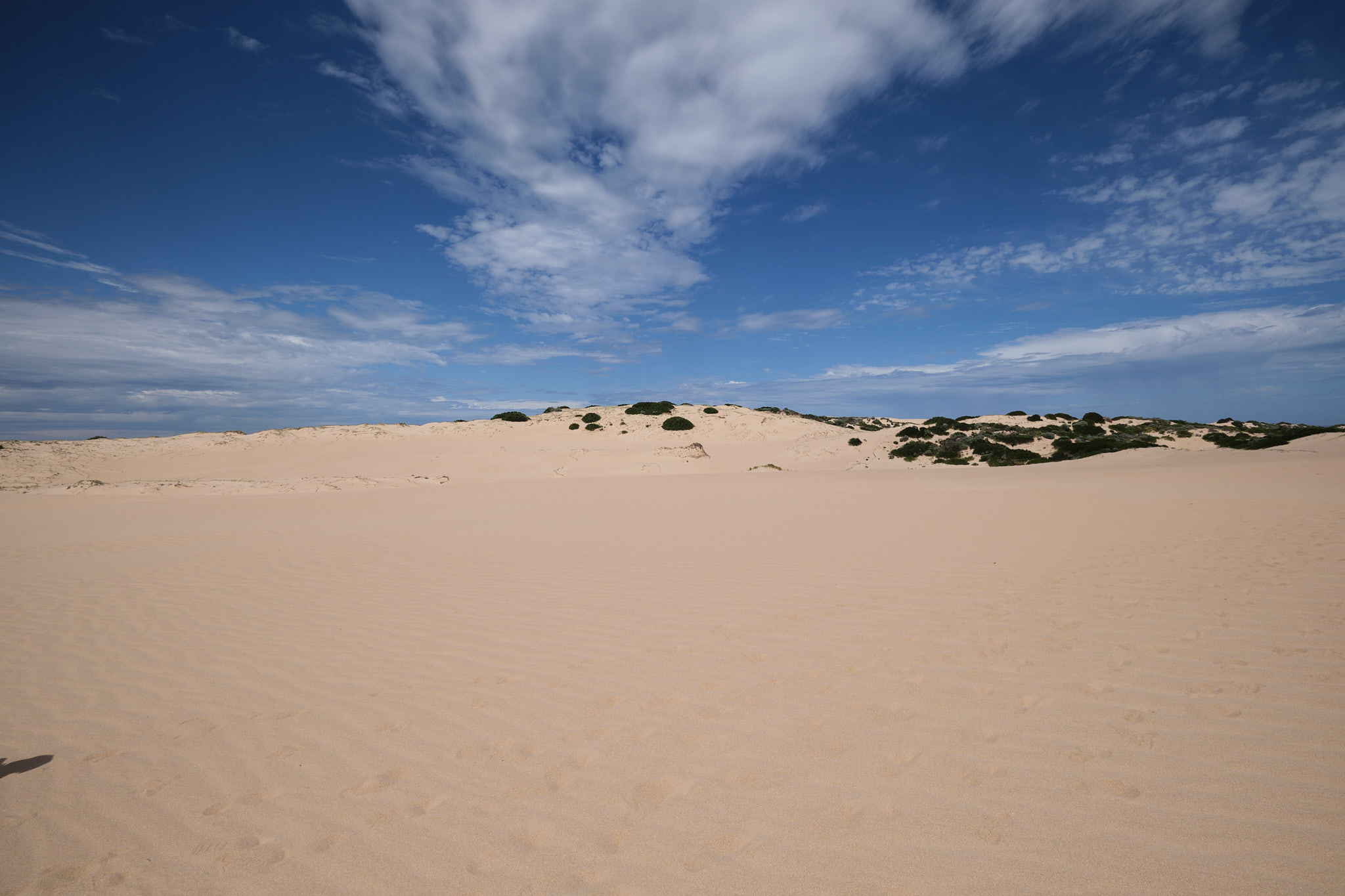 Unser zweiter Halt hiess Cattle Point. Hier ist der Coorong so seicht, dass hier früher Schafe zum Weiden in die Dünenlandschaft getrieben wurden. Wir machten hier mit Rupert und Mark einen weiteren geführten Spaziergang hoch hinauf auf die spektakulären Sanddünen. Hier erklärte uns Mark eine der bedeutendsten kulturellen Stätten der Ngarrindjeri (ein gigantischer Midden mit unendlich vielen Muschelschalen aus den zehntausenden von Jahren der Nutzung).