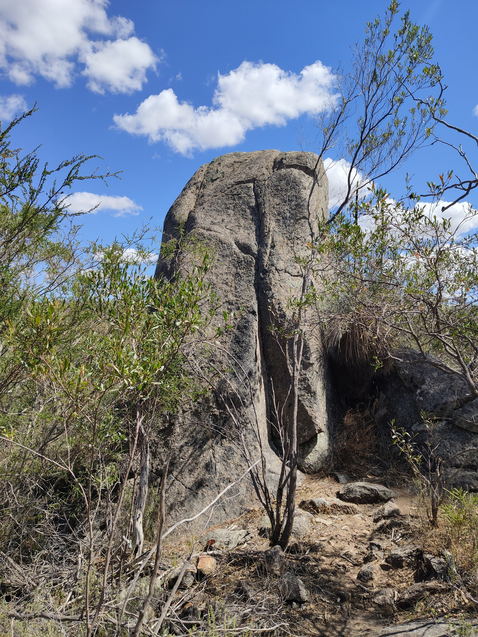 Dort hatte ich schon eine Site im Wirra Campground gebucht. Aber zuerst habe ich die vorhandene Zeit genutzt, um auf der menschenleeren Gawler View Picnic Area gemütlich im Schatten einen Lunch zuzubereiten und zu verspeisen und danach einen kleinen Hike zum Knob Lookout und zurück via Lizard Rock und Chimney Rock wieder zur Gawler View zu gehen. Bei Gawler View und beim Knob Lookout muss man den Nachteil der in einem Conservation Park nach und hoch wachsenden Bäume und Büsche in Kauf nehmen: Man hat eigentlich keine Aussicht mehr sondern steht einfach etwas ratlos zwischen den Bäumen. Aber wenigstens haben beim Lizard Rock die Lizards auf dem Rock gezeigt, dass solche Bezeichnungen und Namensgebungen schon Sinn machen sollten. Besonders der zweite Teil des Rundgangs auf einem schmalen Pfad, der sich rauf und runter durch den Wald schlängelte, hat mir gefallen. Und in der riesigen Picnic Area war ich immer noch der einzige. Nach dem Hike habe ich meine Site im Wirra Campground in Beschlag genommen. Ich hab‘ noch kurz auf der Buchungsseite nachgeschaut: Es waren alle 17 Sites und die Gruppensite (eine grosse Gruppe von Jugendlichen) verkauft! Ich hab‘ mir dann gedacht, dass für so viele Leute zwei Toiletten dann schon etwas wenig sind. Man verlangt ja genug (mindestens AUD 24 pro Site plus Vehicle Entry Fee in den Park von AUD 12.50), plus Ich hatte aber die Site gut ausgewählt. Nachmittags im Schatten, zum Dinner etwas Sonne und in der Dämmerung konnte ich die kleinen Fledermäuse beim sehr flinken Einsammeln der Insekten beobachten. Ausser Vögeln, Schmetterlingen und anderen Insekten habe ich tagsüber aber keine weiteren Tiere beobachten können. Am nächsten Morgen habe ich nach dem Frühstück dann kurzerhand die Toilette bei der Gawler Picnic Area (3km entfernt) genutzt: Diese hatte ich ganz für mich alleine.
