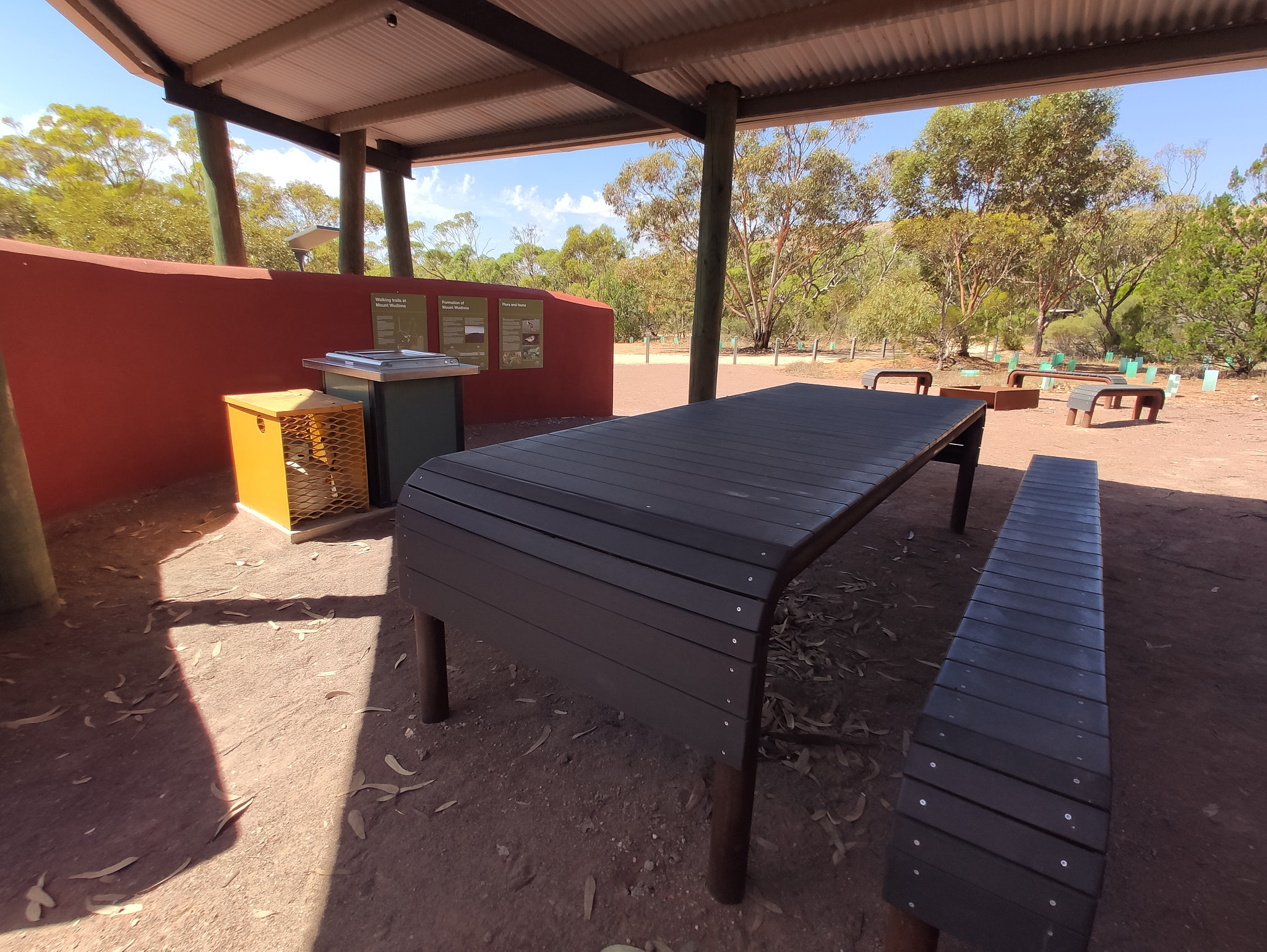 Am Fuss des Mt Wudinna habe ich zuerst den Picknickplatz (mit Grillmöglichkeiten) für einen Lunch genutzt und mich dann für den Aufstieg bereit gemacht. Es war heute ein angenehm kühler Sommertag (26°) mit einem kühlenden Wind, daher perfekt für eine kleinen Wanderung. Der Wanderweg zum Gipfel des Mt. Wudinna ist relativ kurz, und man muss kein geübter Hiker sein, um dieses Kunststück zu vollbringen. Aber bei Nässe wird der Auf- und Abstieg über den Granit wohl eher ungemütlich sein. Die Wanderung lohnt sich auf jeden Fall, denn die Aussicht aus 261m Höhe ist spektakulär und reicht viele Kilometer weit.
