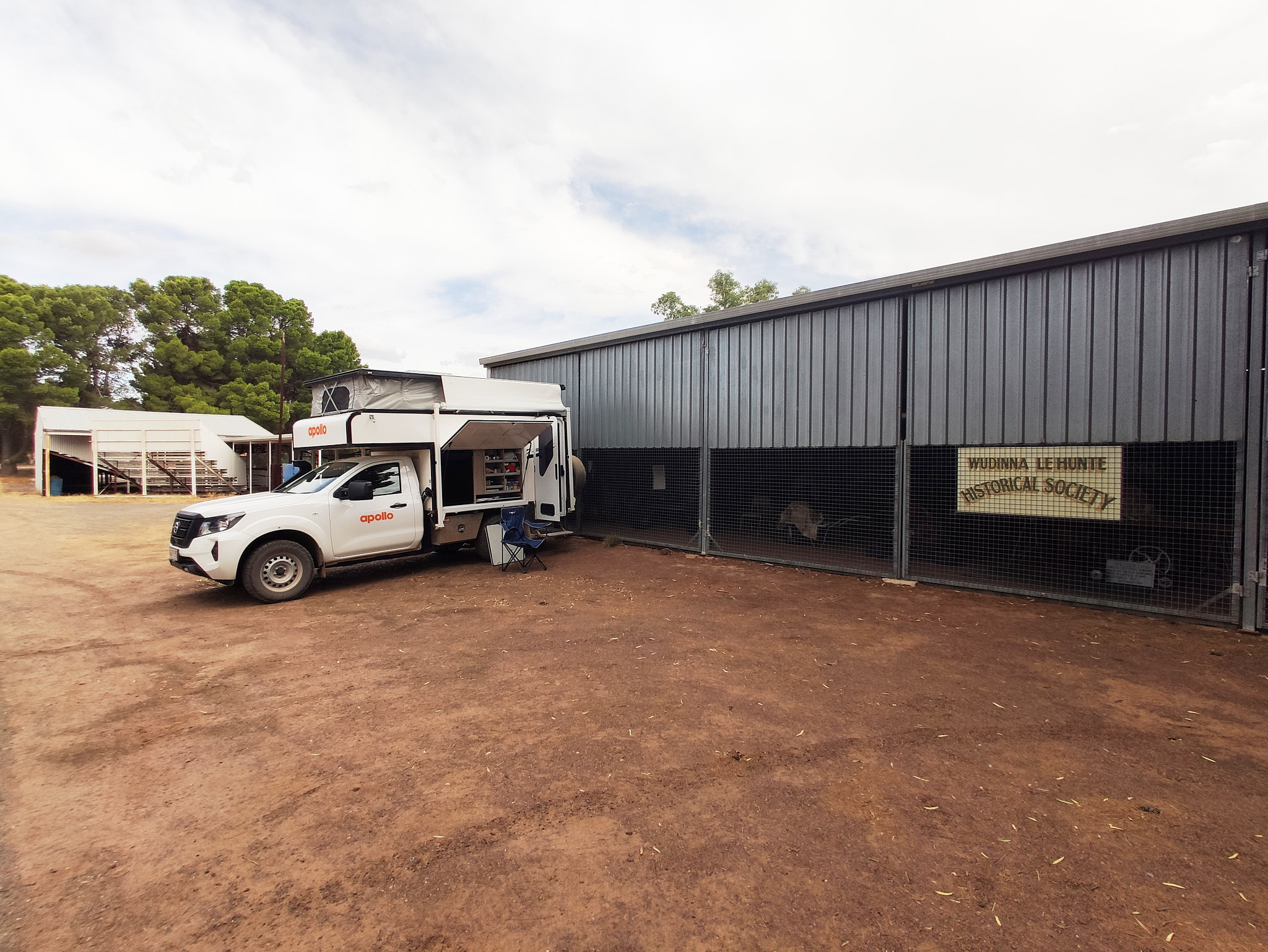 Nach diesem Ausflug habe ich mir einen schattigen und geschützten Platz auf dem Showground von Wudinna gesucht. Den Platz stellt die Gemeinde den Campern (AUD 10 unpowered, AUD 15 powered) Campern zur Verfügung. In einer Ecke des Platzes hat es saubere Tolietten und eine Unisex-Dusche (AUD 2 für 4 Minuten). Da ich die nächsten drei Nächte ohne Landsrom im Nationalpark verbringen wollte und weil es nachts wahrscheinlich kalt wird, wollte ich für diese Nacht einen Stromanschluss haben. Ich habe meinen Campervan mangels Stromanschlüssen und Schatten daher vor dem Shed der „Historical Society“ geparkt, weil es dort noch einen Kasten mit einigen unbenutzten Stromanschlüssen sowie Schatten und Windschutz gab. Ich habe also die Sammlung alter landwirtschaftlicher Gerätschaften und Fahrzeuge temporär um einen „Nissan, 2023“ erweitert…
