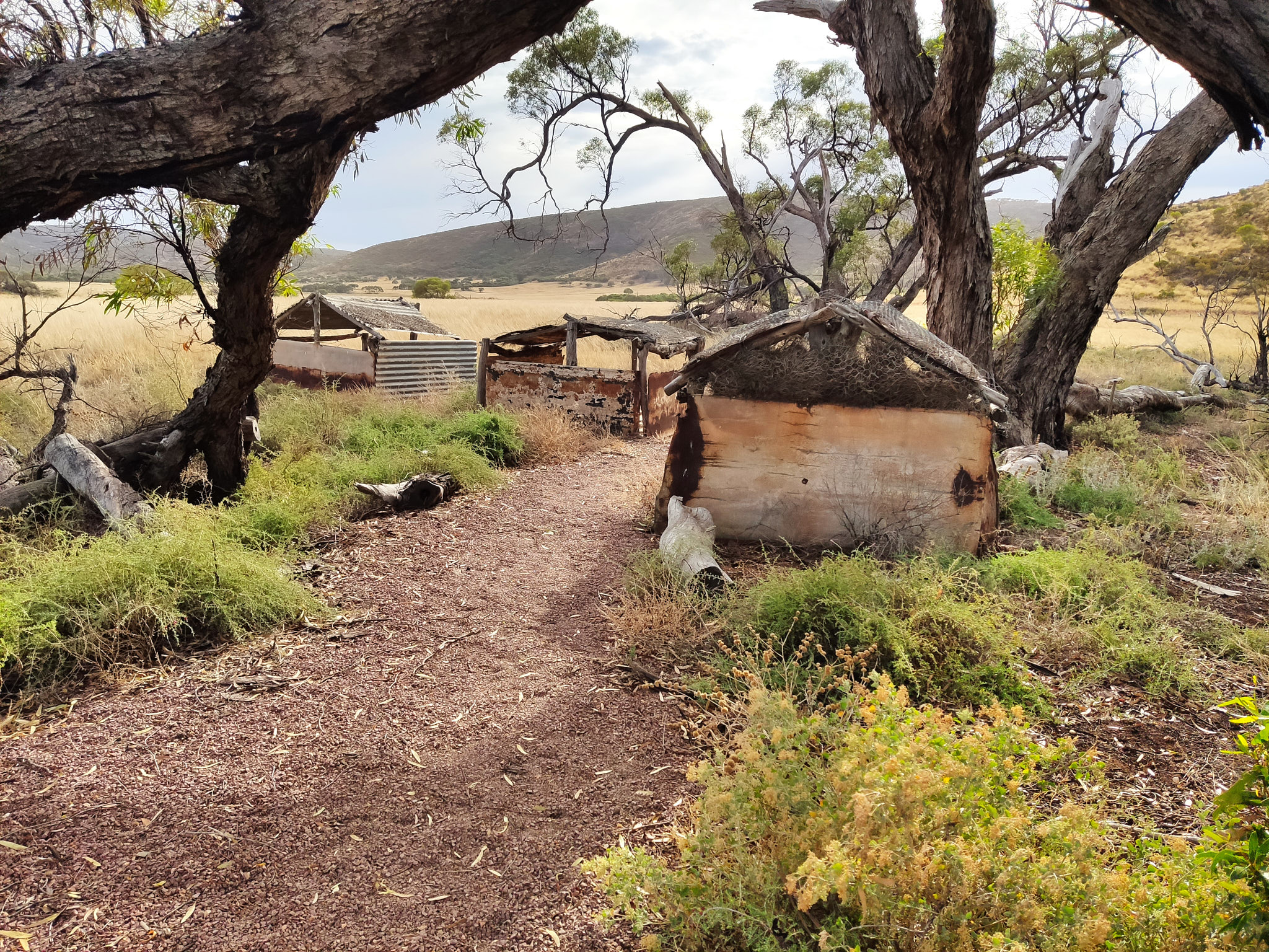Als erstes habe ich das Old Paney Homestead besucht. Dieses kann man sogar von innen erkunden. Paney Homestead, Old Paney Homestead und Pondanna Outstation erinnern an das frühe Stationsleben und die enormen Anstrengungen, die in diesem abgelegenen und von wechselhaften Wetterbedingungen geprägten Land zu bewältigen waren. Die noch heute funktionsfähigen Wassertanks zeigen auf, wie wichtig Wasser in diesem Gebiet für das Überleben von Mensch und Geschäft waren. Eindrücklich war die Wichtigkeit der Hunde: Die Hundehütten waren fast ebenso komfortabel wie das eigene Haus. Es ist auch kaum vorstellbar, wie früher diese riesigen Distanzen überwunden wurden. Die Geschichten auf den Schildern erzählen eindrücklich von menschliche Entbehrungen, von Konflikten und vom Überleben.