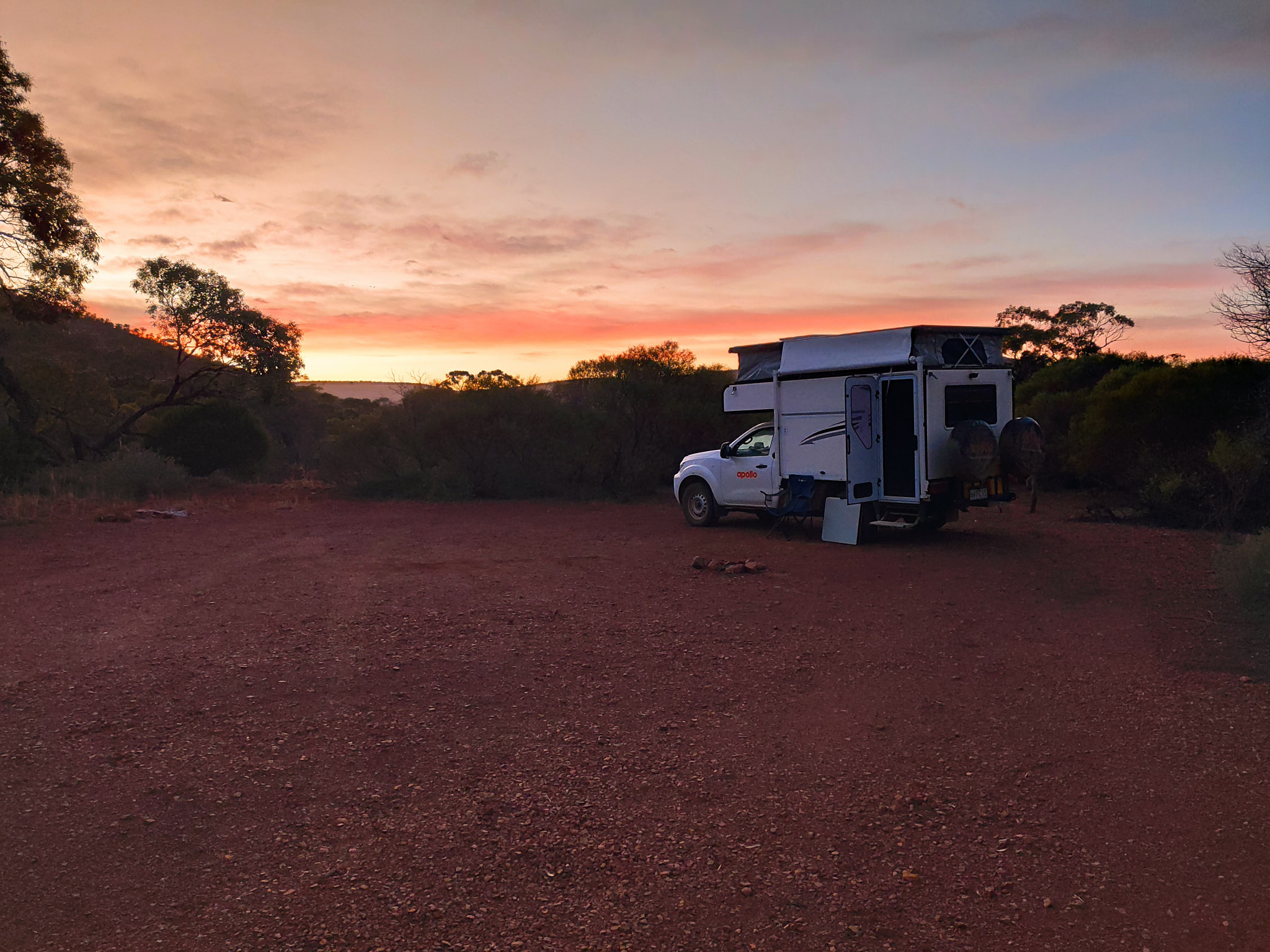 Am nächsten Morgen war dann der Entschluss gefasst, möglichst früh einen oder zwei der fünf Wasserfälle zu besuchen und mich dann in einem Gebiet mit Mobil-Empfang auf die Online-Suche nach einem Platz in einem Caravan Park an der Westküste der Eyre Peninsula zu machen. Denn ich hatte schon in Wudinna gemerkt, dass das ein ziemlich schwieriges Unterfangen werden könnte. Am Samstag hatte noch ein einziger Caravan Park eine freie Powered Site, am Sonntag gar keiner mehr! Auf die weitere Übernachtung im Nationalpark verzichtete ich, denn auch das Wetter war noch sehr unbeständig.