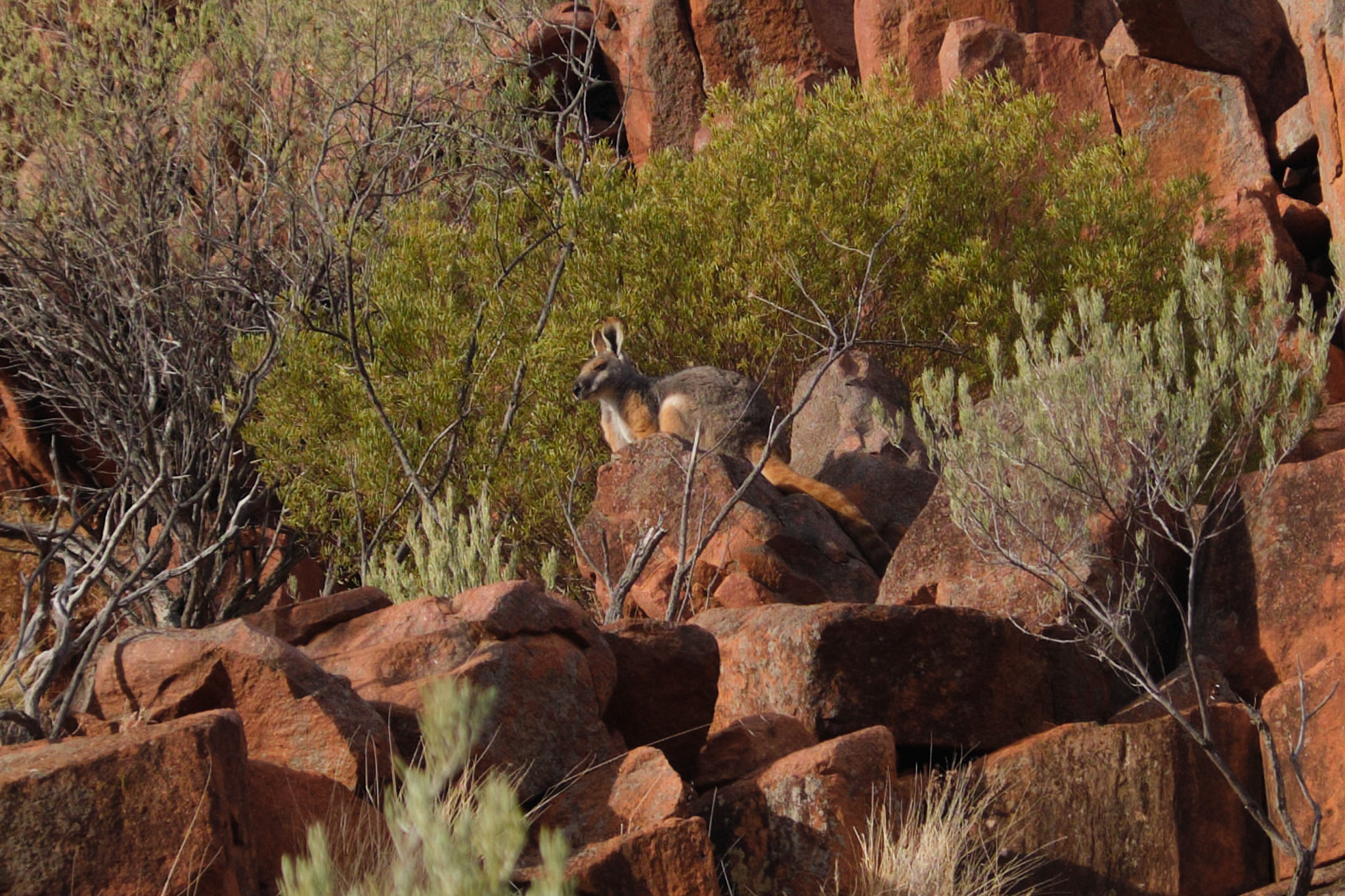 Nach dem kurzen Weg zum Little Yandinga Wasserfall habe ich dann tatsächlich noch zwei Gelbfuss-Felsenwallabys beobachten können.