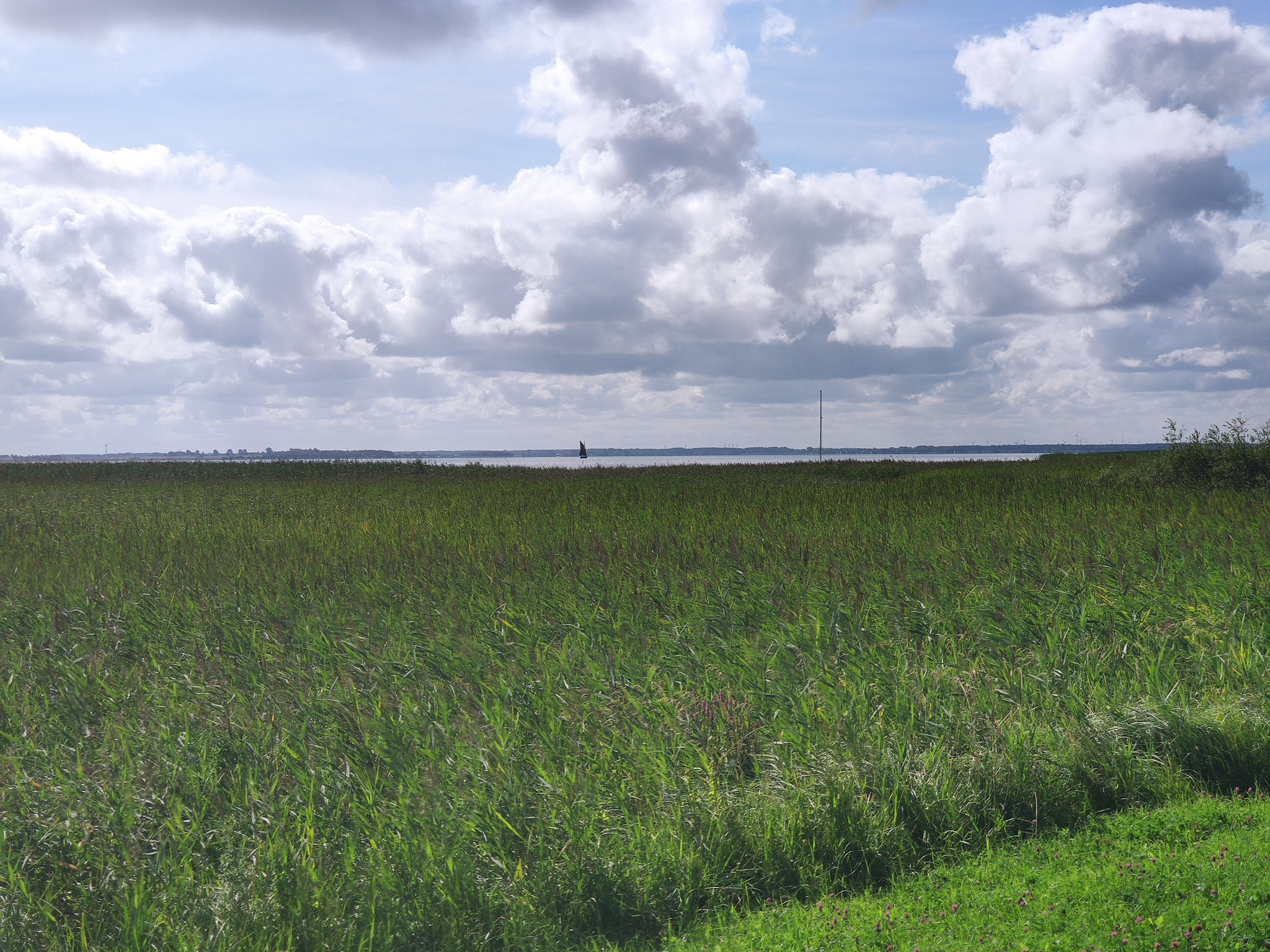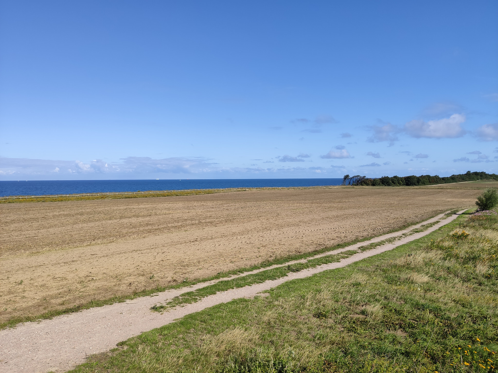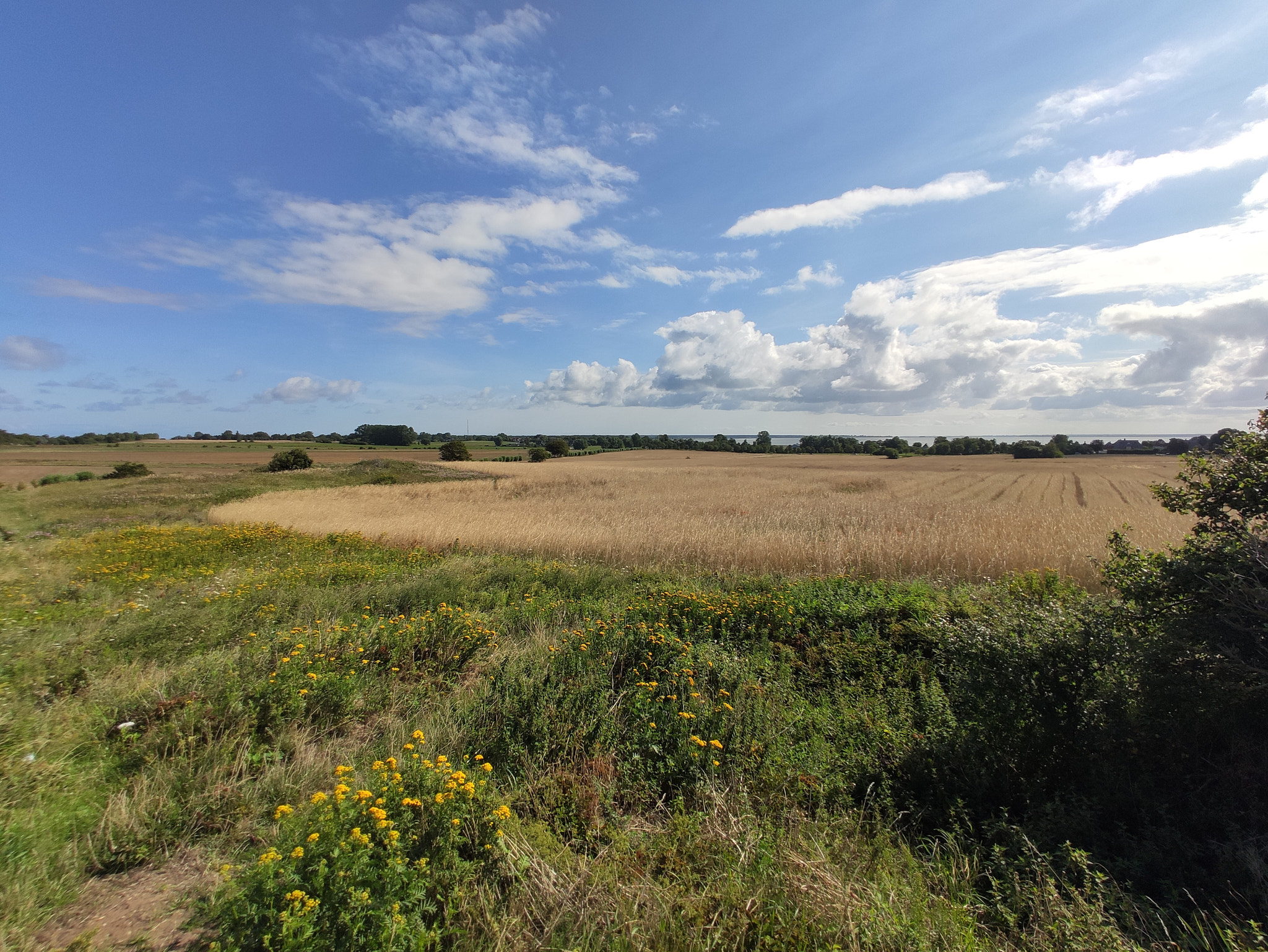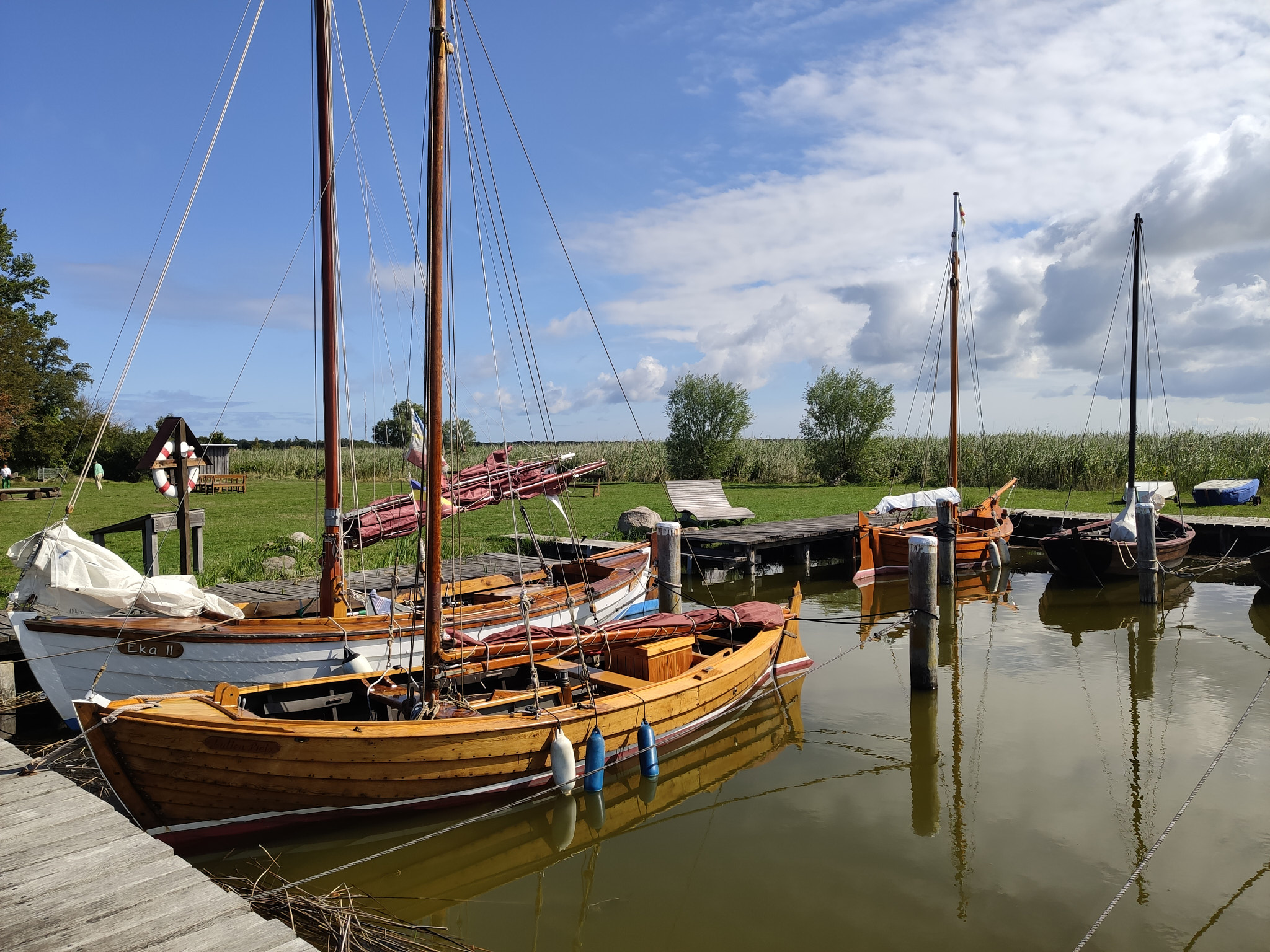 Der fünfte August war ein weiterer Tag mit einer Rundwanderung. Ich bin ich nach Ahrenshoop gefahren und habe dort am südlichen Ortsrand das Auto geparkt. Der Weg ging entlang des Grenzwegs zur Steilküste und ein ganz schönes Stück entlang des faszinierenden Hochufersbis zum Bakelberg (18m). Von dort ging es schräg rüber zur Boddenküste von Althangen und entlang des Boddens wieder zurück nach Ahrenshoop. Die Boddenseite mit ihren lauschigen, kleinen Häfen und den äusserst gemütlichen Ferienhäusern und Restaurants kann man einfach nur geniessen. Was für ein Kontrast zum Trubel in den Touristenorten!