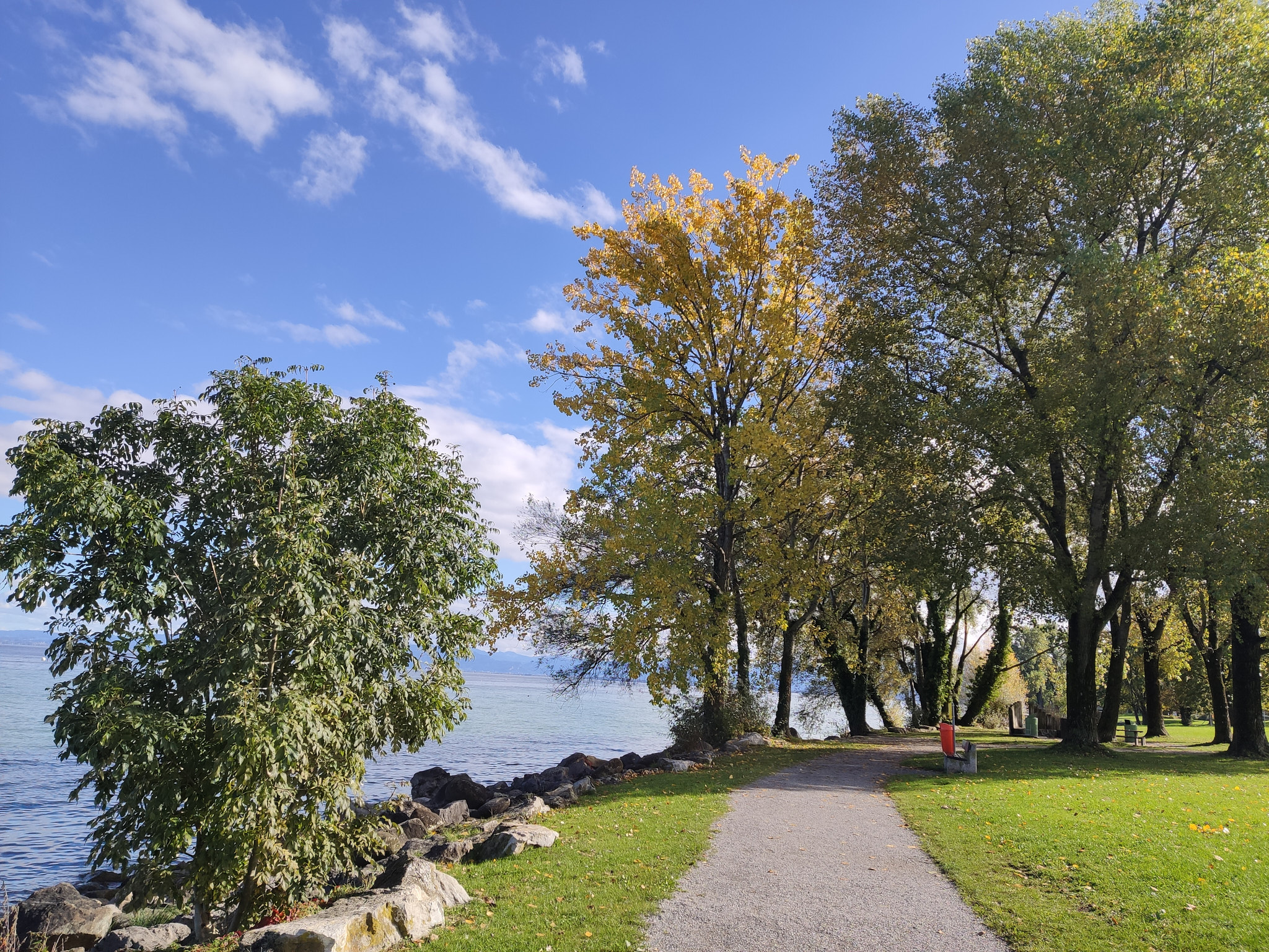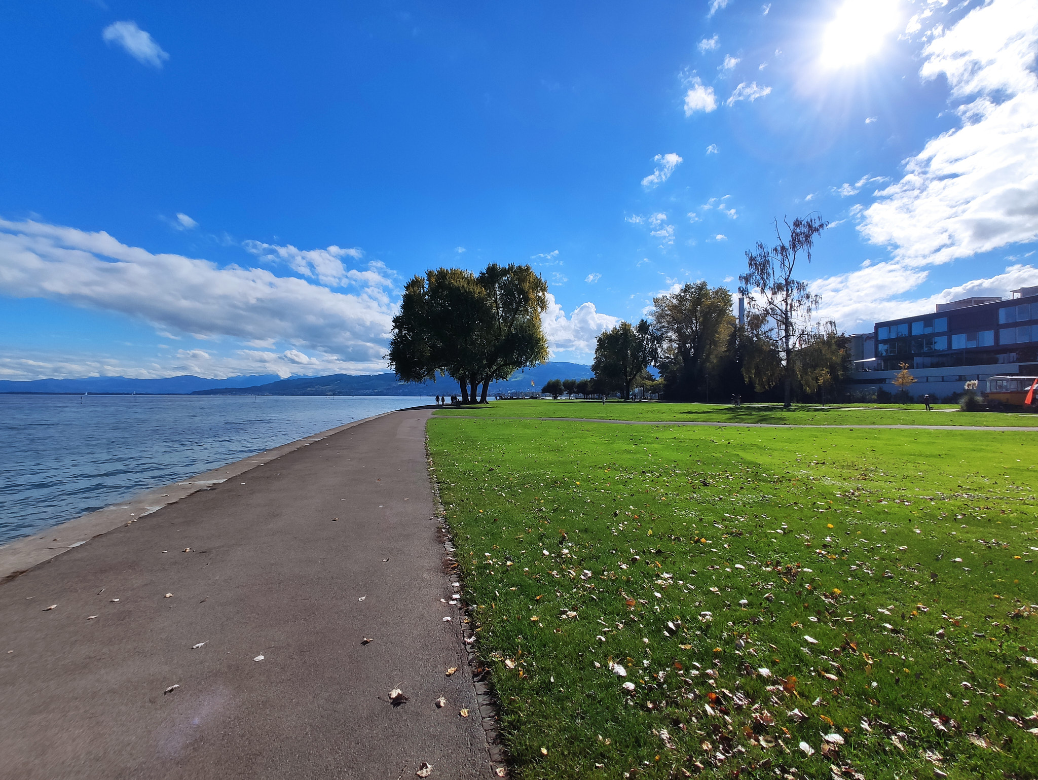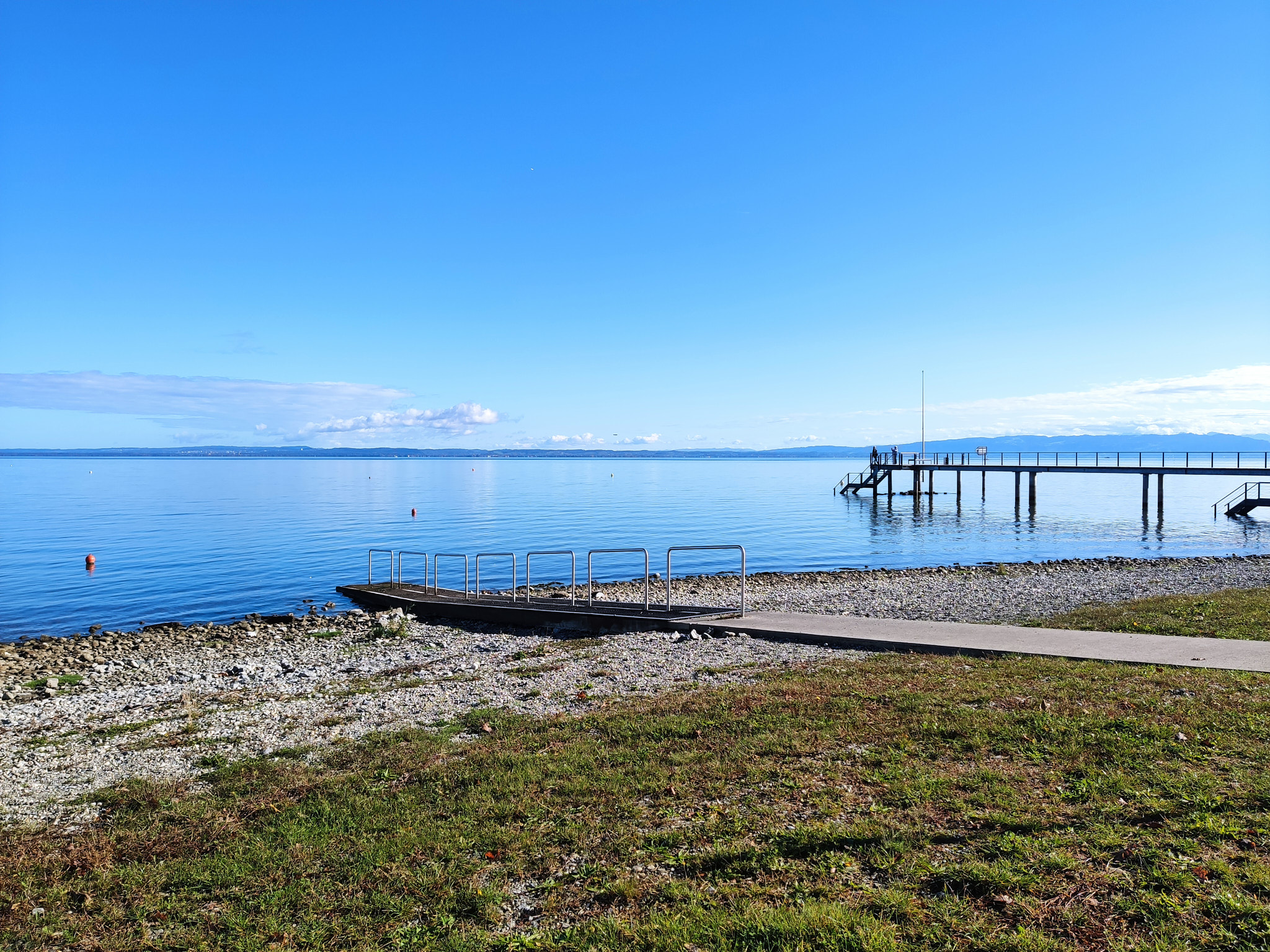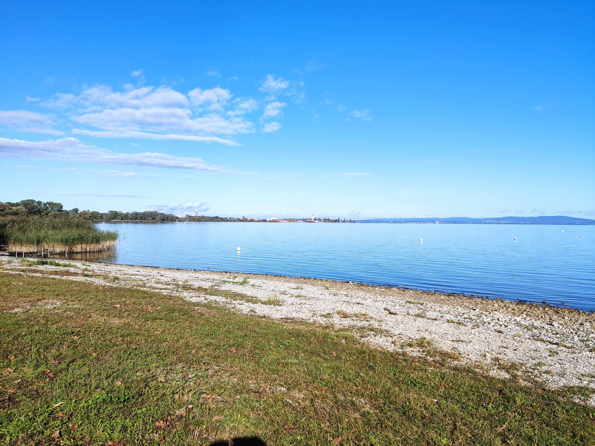 Nach der ersten, sehr gemütlichen Nacht empfängt mich ein sehr sonniger und warmer Sonntag. Nach dem Frühstück nutze ich den Morgen für einen kleinen Rundgang zum Strandbad und Richtung Egnach. Der Ausblick auf den morgendlichen Bodensee ist einfach fantastisch!