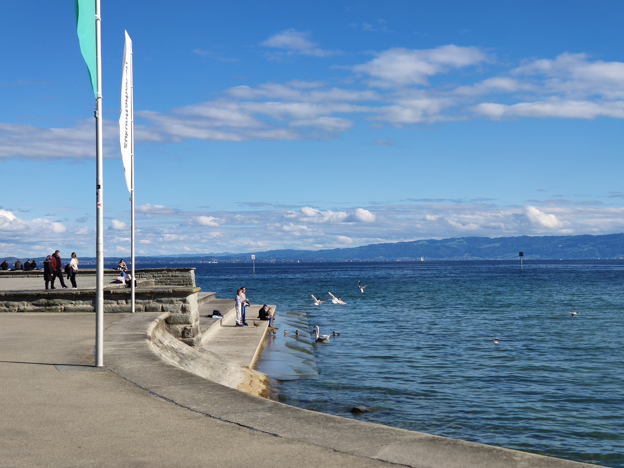Am Nachmittag mache ich mich dann entlang des Seeuferwegs zu Fuss auf den Weg nach Arbon. Dort genoss ich die schöne Promenade beim Hafen, wo sich sogar ein paar Jugendliche ins kalte Bodenseewasser wagten! Mit einer kleinen Runde durch die Altstadt ging es dann wieder zurück zum Camping.