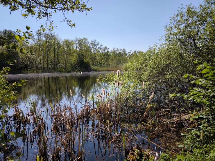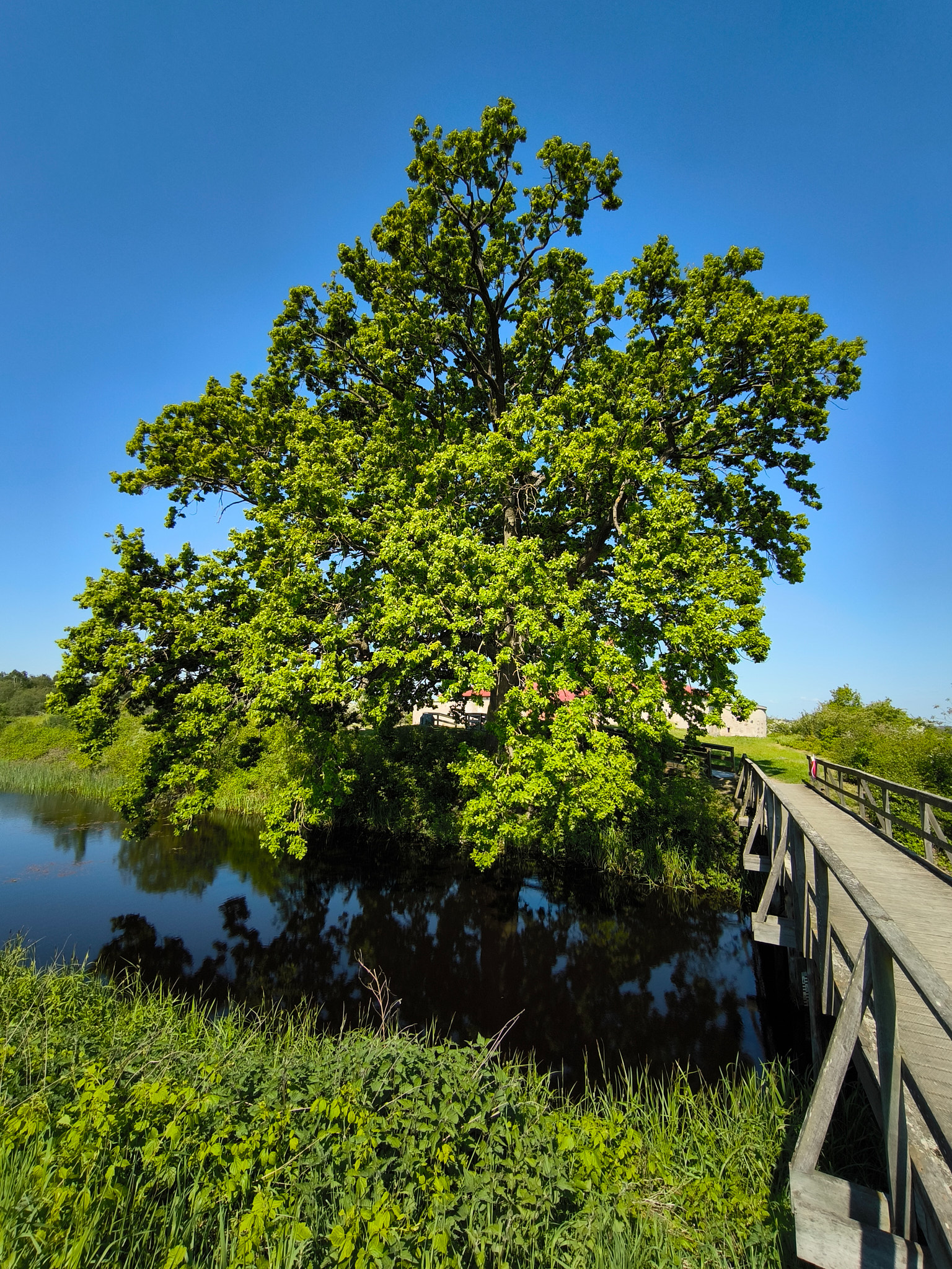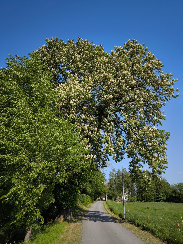 Die Runde beginnt beim Naturum, gleich beim Parkplatz. Ich gehe links zuerst durch den feuchten Laubwald mit kleinen Teichen, wo Zwergspechte nisten. Es ist wunderbar, wie viele Bäume und Sträucher weiss blühen! Nach einer längeren Strecke entlang einer ehemaligen, abgedeckten Deponie (meine Annahme) sieht man den Hügel, der die Überreste von Härlövsborg verbirgt. Im Mittelalter befand sich hier eine Holzburg und im 17. Jahrhundert eine Schanze. Weiter geht es zur Burgruine Lillö, den Überresten einer mittelalterlichen Burg. Die Schlüssel könnten im Naturzentrum ausgeliehen werden. Gleich nebenan liegt Lillö Kungsgård, wo in den 1940er Jahren sogar der Storch nistete. Mich faszinierte die riesige Eiche, welche am Ufer des Flusses steht. Aber auch der Behälter, in welchem man gebrauchte Einmalgrills entsorgen kann, zog meine Aufmerksamkeit an. Die Runde führt weiter zu den Strandwiesen von Isternäset, welche ich von der Isternäs-Plattform aus überblickte, aber ohne Feldstecher nur wenige Vögel entdeckte. Hier können im Winter Eisvögel beobachtet werden, im Sommer kann man das Revier des Sumpffalkens überblicken. Der Weg führt nun entlang des Kanalhusspången zum Knanalhuset, Vattenrikets erstem Freilichtmuseum. Jetzt bin ich komplett von der Natur wieder in die Strasseninfrastruktur und die Industrieareale eingetaucht. Beim Tivolibadet überquere ich die breite Brücke und bin zurück im Naturum. Dort darf ich eine kurze Führung zur Geschichte des Vattenriket (siehe oben) geniessen. Ich kann mir kaum vorstellen, dass hier im Sommer hunderte Besucher hinströmen und täglich 5 Führungen durch das Vattenriket durchgeführt werden. Aktuell gibt es alle paar Tage eine Führung…