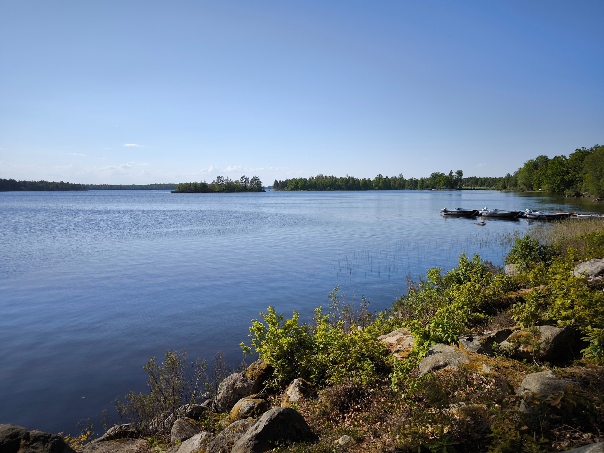 Am Montagnachmittag bin ich in Urshult im Småland angekommen, Zentrum der Apfelplantagen und Erdbeerfelder am Ufer das Åsnen.