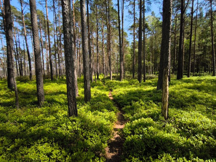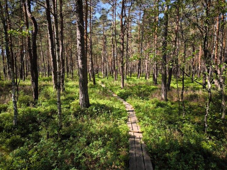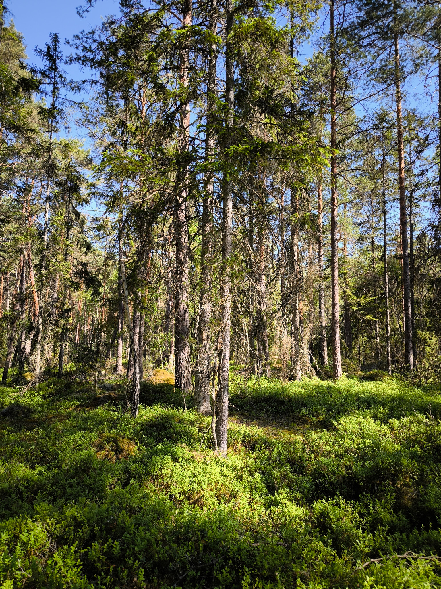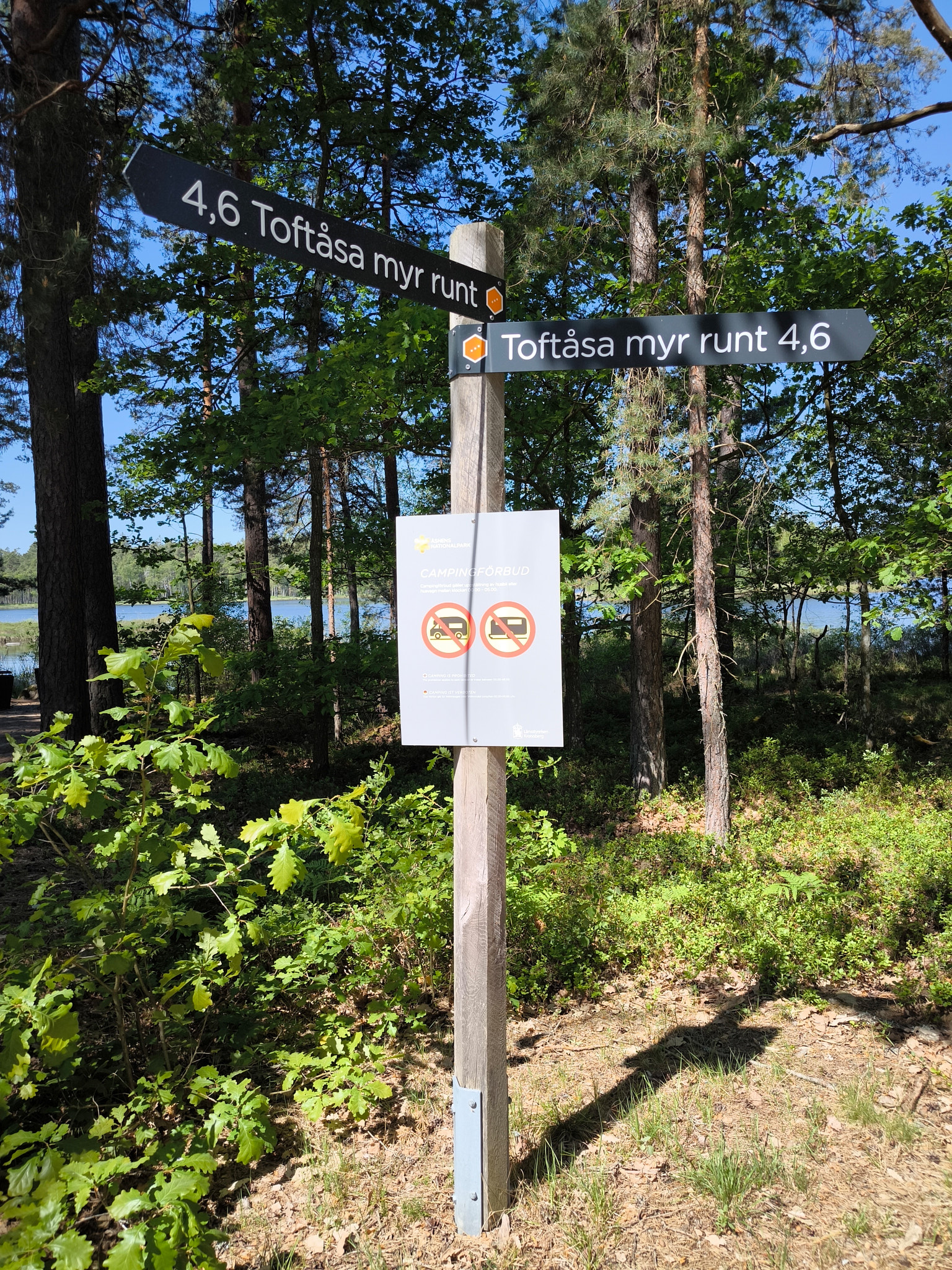 Da es ja immer noch Vormittag war, bin ich an das südliche Ende des Nationalparks, zum Toftåsa Myr, einem Moor, gefahren. Dort gibt einen weiteren schönen Rundwanderweg, die Toftåsa Myr Runt (die Toftåsa Moor Runde). Der Weg führt zuerst auf weichen Pfaden und schönen Stegen über den Sumpf. Die duftenden sonnengewärmten Kiefernwälder, das Meer an frischen, hellgrünen Sträuchern von Heidelbeeren, Preiselbeeren und Brunnenkresse muss man einfach geniessen. Ich war über meine festen Schuhe ganz froh, denn das Moor ist stellenweise etwas feucht und nass. Nach der Halbrunde um den See stösst man als nächstes auf einen Rastplatz mit einem magischen Blick auf eines der unberührtesten Gebiete von Åsnen, den Horgefjord. Es gibt hier einen schönen Grillplatz, eine Trockentoilette und einen Windschutz. Ich packte meinen mitgebrachten Lunch aus und kam mit einem dänischen Fahrradfahrer ins Gespräch, welcher auch eine Mittagsrast machte. Er kommt mit seiner Frau seit sehr vielen Jahren in diese Gegend. Die lange Fahrradtour (80km ohne eBike!) macht er aber inzwischen alleine, da es jedes Jahr etwas länger gehe, um die benötigte Fitness aufzubauen. Das war eine nette Abwechslung, mal nicht fast ganz alleine in der Natur und mit sich selber im Gespräch zu sein.