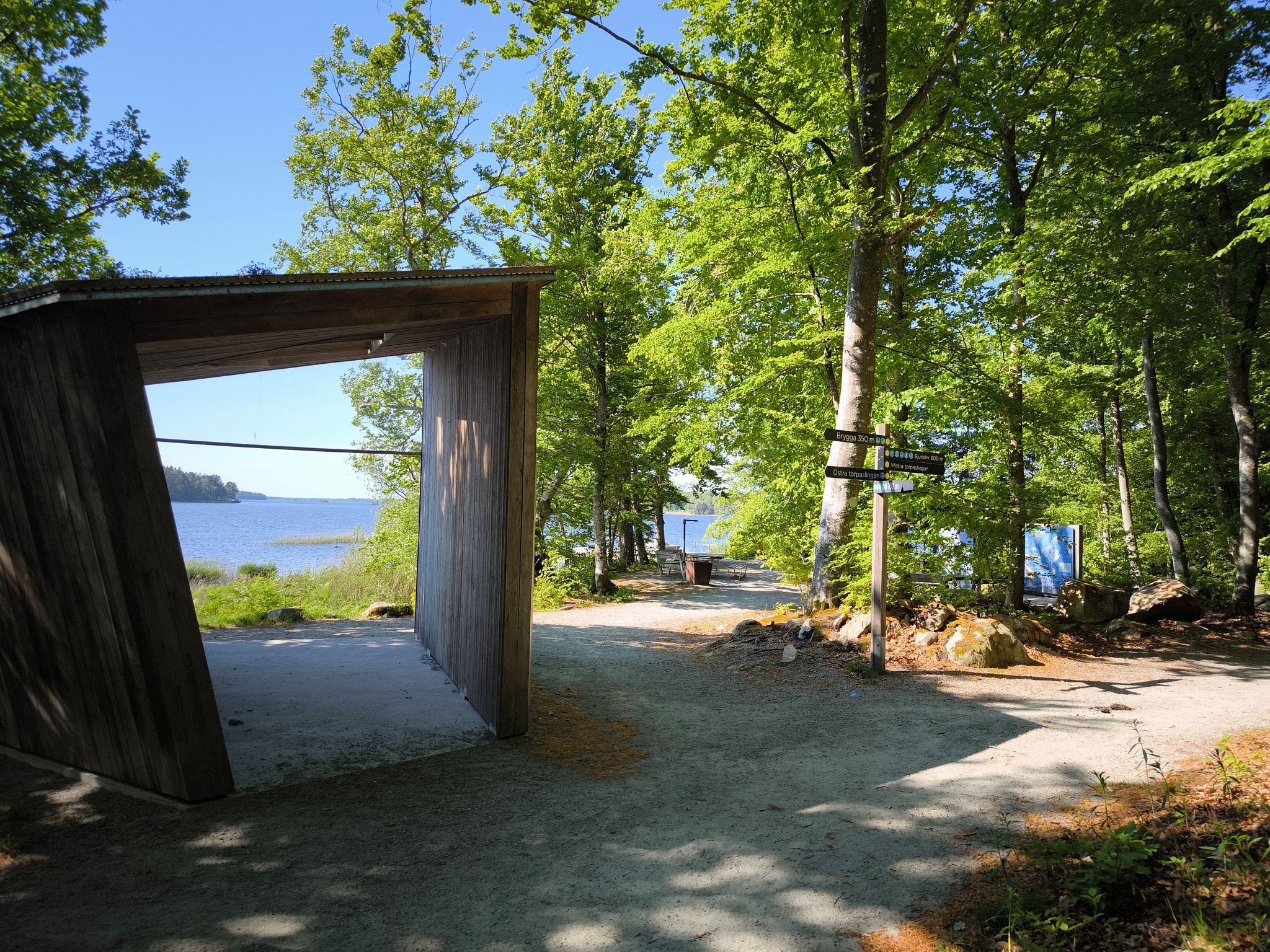 Der Nationalpark Åsnen hat zwei Eingänge – Trollberget im Westen und der Haupteingang Sunnabron im Norden. Die Eingänge sind wie Tore zum Nationalpark, mit hübschen Rastplätzen in einem harmonischen Design. Hier gibt es auch Parkplätze, Informationsschilder, Feuerstellen, Mülleimer und WCs.