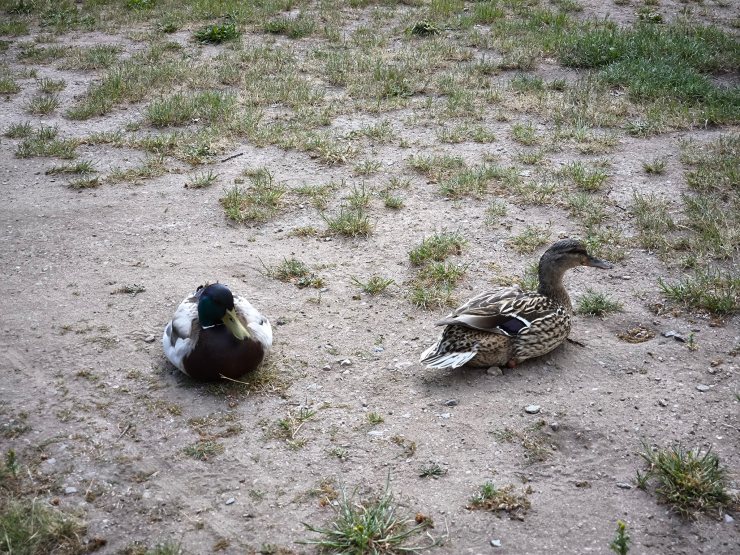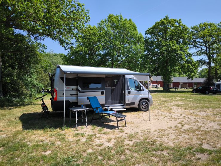 Um 12:30 waren wir wieder zurück am Anleger von Dragsö. Hier war das Wetter wieder sommerlich warm. So drehte ich die Markise des Campers raus und genoss meine kleine Aussicht von der „Camperterrasse“ anstatt von der Schäreninsel. Dort bekam ich auch Besuch von einem Entenpärchen, dass es sich bei mir gemütlich machte. Das fand ich sehr nett und habe ein paar Haferflocken spendiert. Die nicht aufgepickten Reste haben später dann die Spatzen aufgepickt.