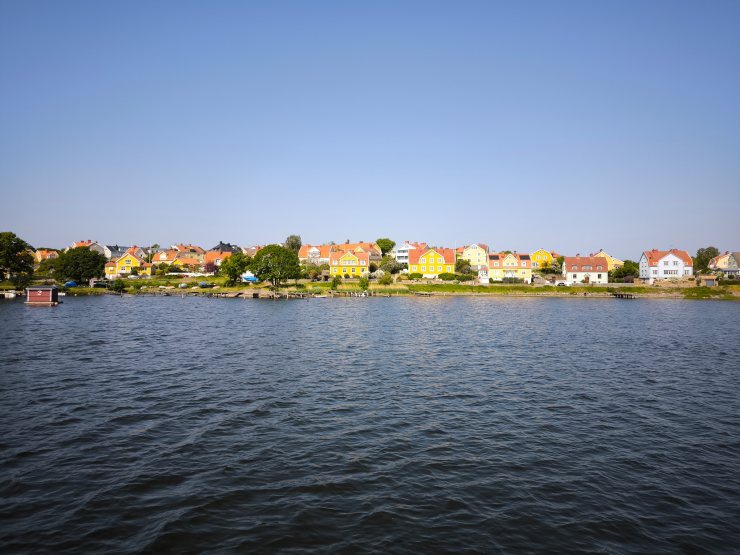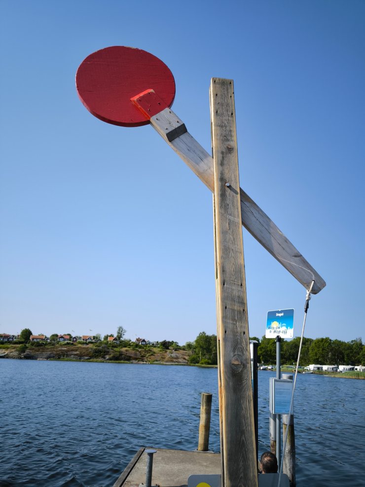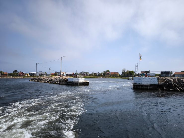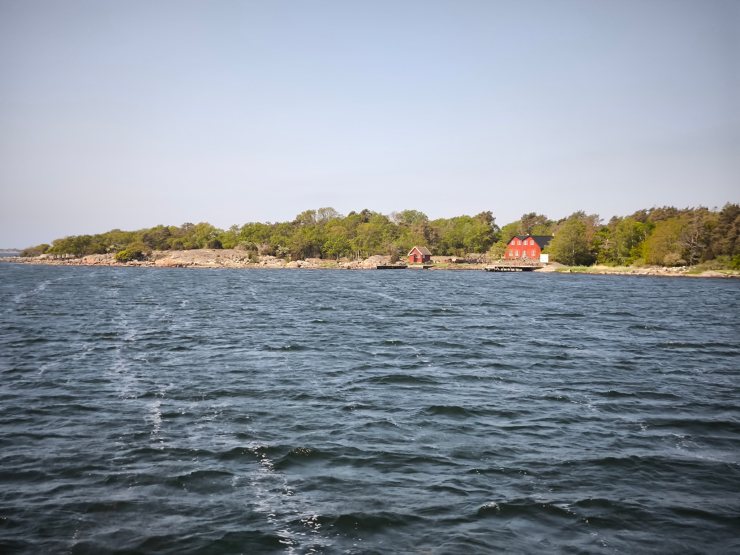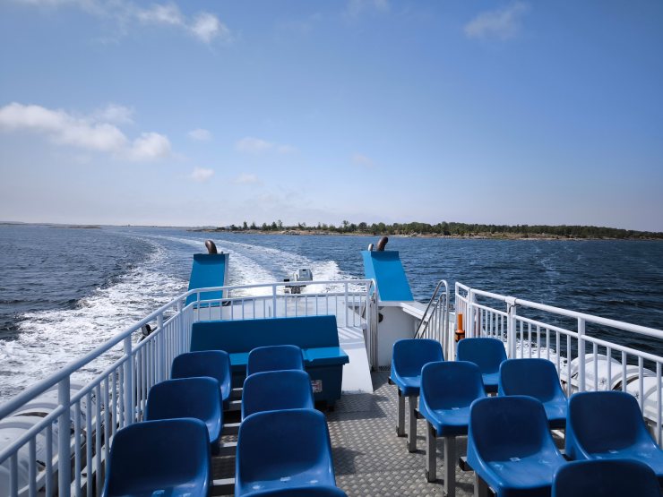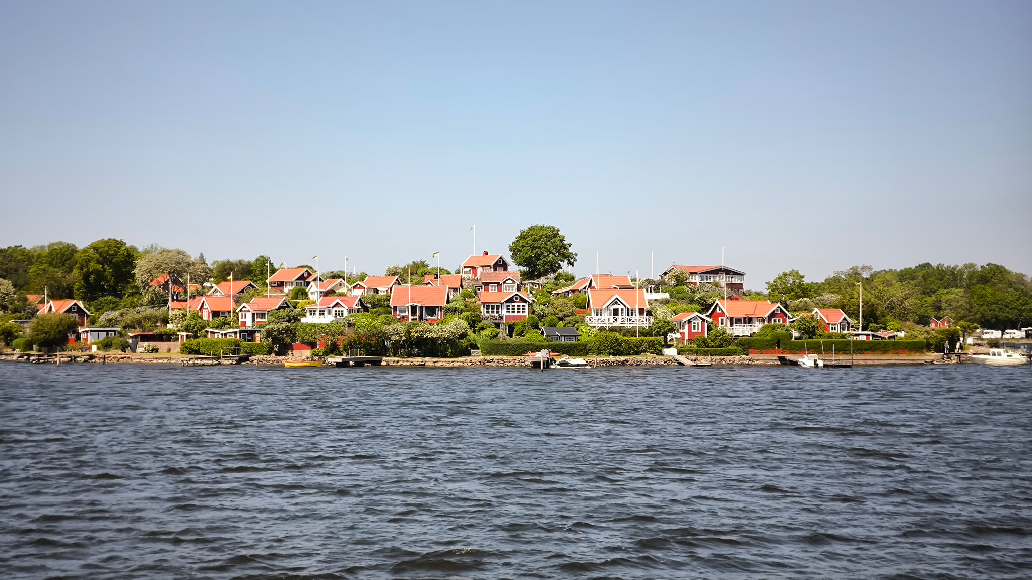 Wir fuhren Kungsholmen, Ytterön, Yttre Park (mit Kabel-Autofähre), Långören, Inlängan an. Da zeigte sich schon, dass der äusserste Stop in Stenshamn nicht so toll sein würde, da hier draussen der Wind stark blies und eine Nebeldecke über die Schären geblasen wurde. Eigentlich wollte ich hier aussteigen, den Leuchtturm und die Robben auf der Nachbarinsel Utlängen besuchen und dann viereinhalb Stunden später wieder mit dem selben Schiff zurück. Doch es war so kalt (respektive ich hatte mich eher auf warmes Sommerwetter eingestellt – was für eine Fehlplanung), dass ich gleich wieder einstieg und die Fahrt mit Halt an fast den selben Anlegern im windgeschützten hinteren, aber auch lauteren Teil des Schiffes genoss. Da konnte ich den mitgebrachten Lunch auch gleich verzehren. Am Schluss der Fahrt boten sich schöne Blicke auf die Hafenanlagen (Marinestützpunkt) sowie auf die berühmten und „very instagrammable“ 49 Häuschen auf Brändaholm.