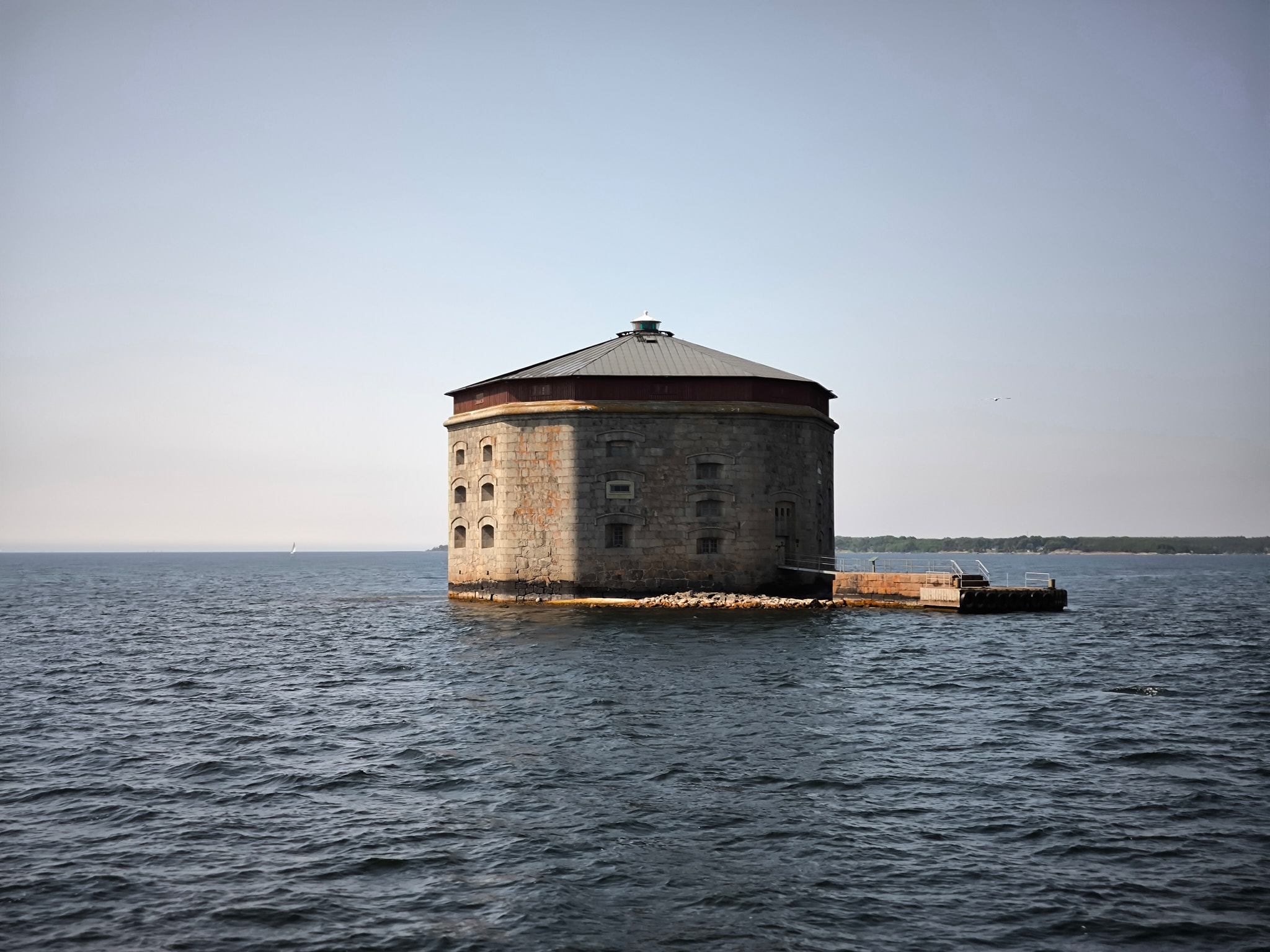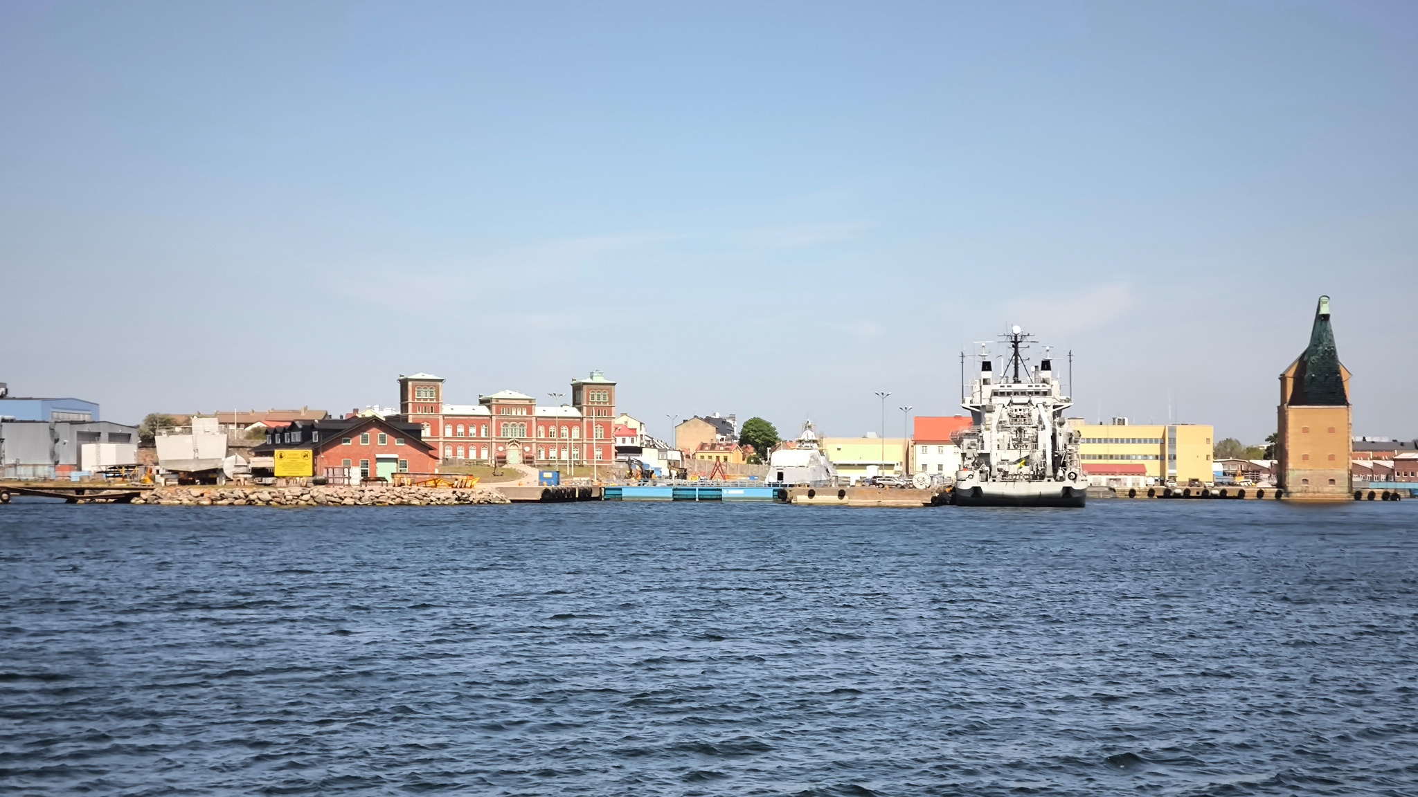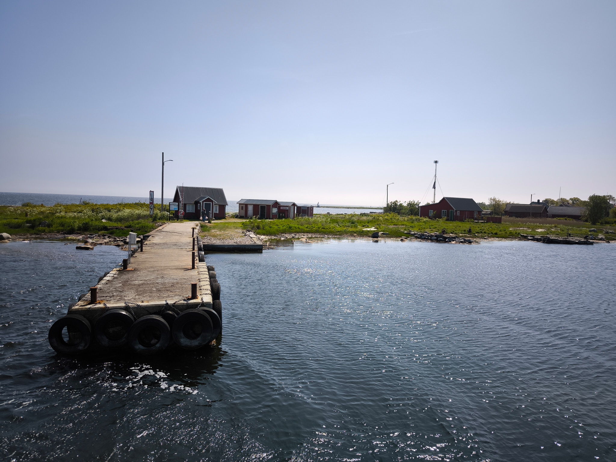 Wir fuhren Kungsholmen, Ytterön, Yttre Park (mit Kabel-Autofähre), Långören, Inlängan an. Da zeigte sich schon, dass der äusserste Stop in Stenshamn nicht so toll sein würde, da hier draussen der Wind stark blies und eine Nebeldecke über die Schären geblasen wurde. Eigentlich wollte ich hier aussteigen, den Leuchtturm und die Robben auf der Nachbarinsel Utlängen besuchen und dann viereinhalb Stunden später wieder mit dem selben Schiff zurück. Doch es war so kalt (respektive ich hatte mich eher auf warmes Sommerwetter eingestellt – was für eine Fehlplanung), dass ich gleich wieder einstieg und die Fahrt mit Halt an fast den selben Anlegern im windgeschützten hinteren, aber auch lauteren Teil des Schiffes genoss. Da konnte ich den mitgebrachten Lunch auch gleich verzehren. Am Schluss der Fahrt boten sich schöne Blicke auf die Hafenanlagen (Marinestützpunkt) sowie auf die berühmten und „very instagrammable“ 49 Häuschen auf Brändaholm.