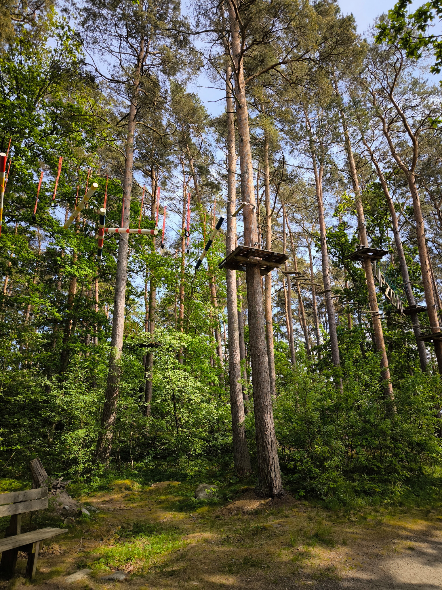 Für diejenigen, die in den Baumwipfeln klettern und schaukeln möchten, hat es jetzt in den Kiefern Upzone Äventyrspark, ein Kletterpark. Der war heute aber zu und hatte keine Besucher.