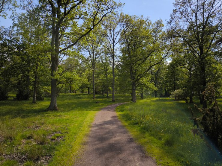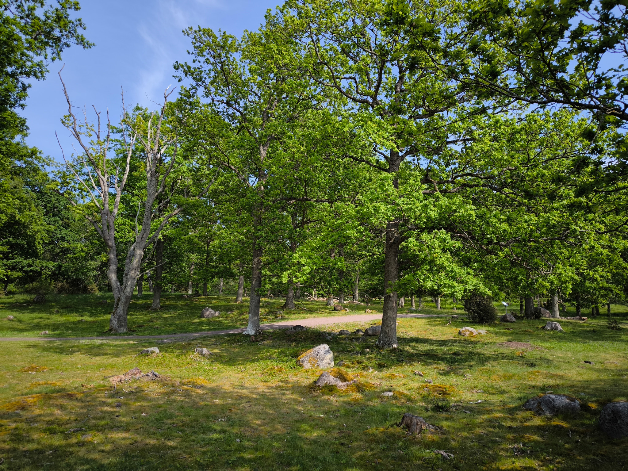 Die Runde startet im Kiefernwald des Campingplatzes. Bald wird dieser durch einen Eichenwald abgelöst und es eröffnet sich auf der Westseite der Ausblick auf Västra Sjön.