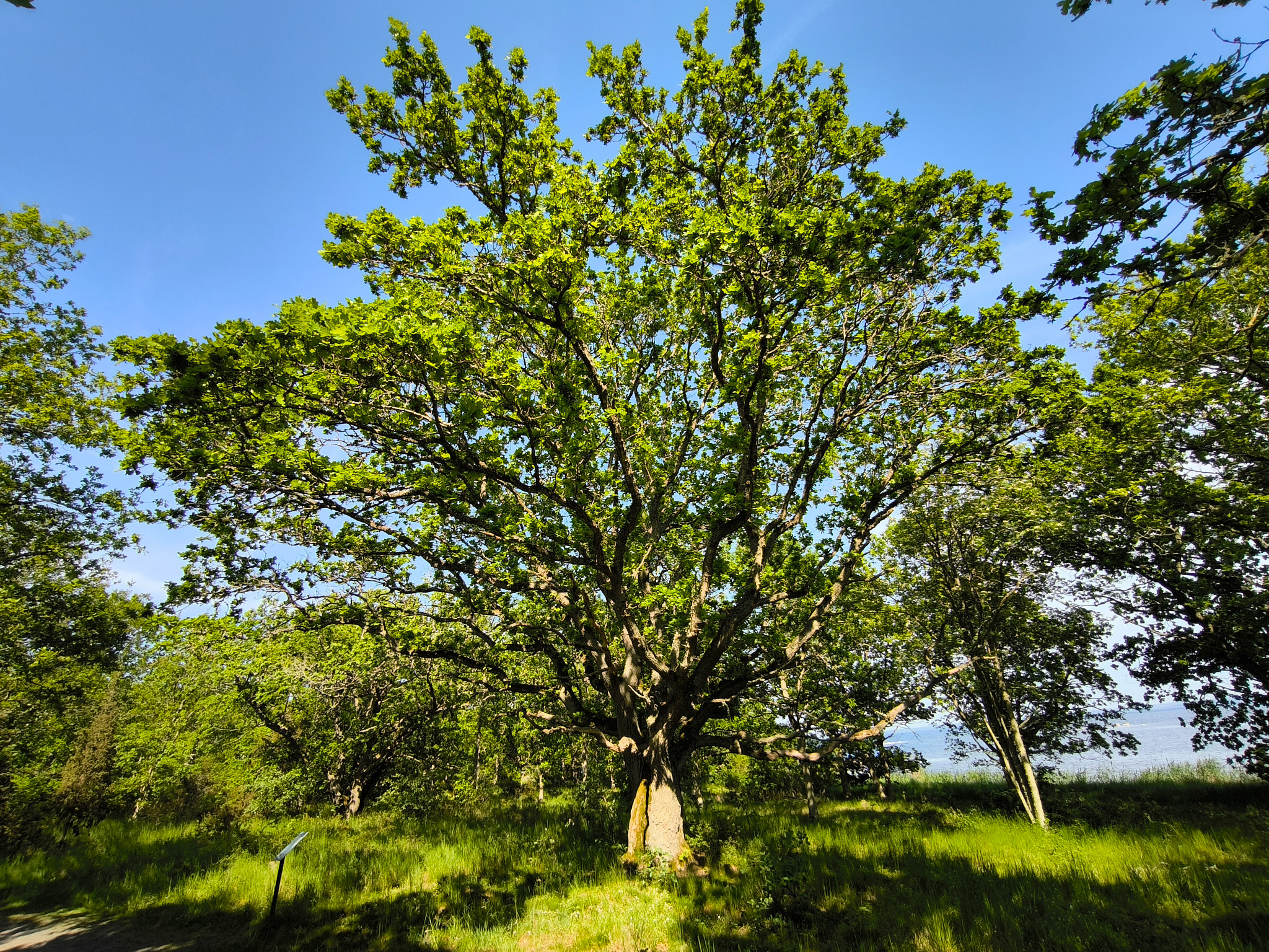 Ich bereite mir in der nahegelegenen Küche das Abendessen zu und bin danach ganz erstaunt, dass mir die Wetter-App eine Unwetterwarnung für die Nacht anzeigt. In der Nacht beginnt es tatsächlich zu regnen und ich hole noch rasch den Campingstuhl rein. Am Morgen sehe ich dann, dass mein Camper durch viele heruntergefallene Blätter und durch unzählige verblühte Blüten der Eiche komplett versifft ist. Ich beseitige den schlimmsten Dreck, bevor ich mich dann nachmittags mit dem Fahrrad noch nach Kalmar aufmache.