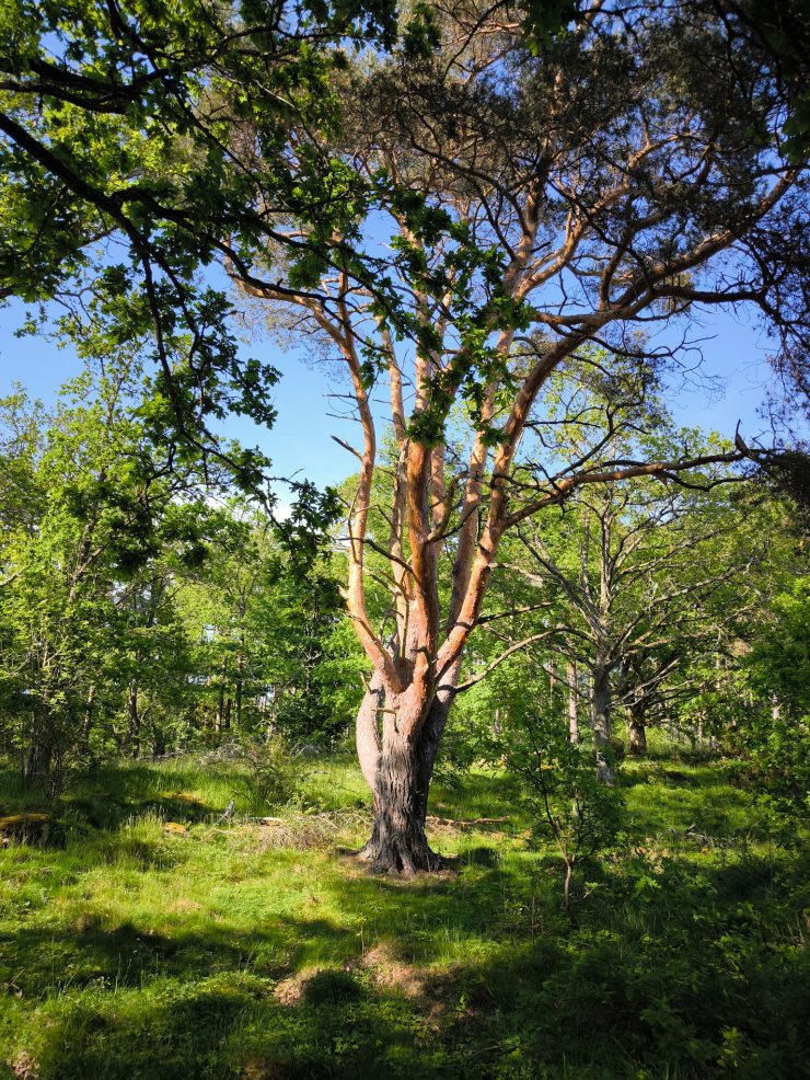Hier mitten auf Stensö im Gebiet namens Höge ås können man erkennen, dass es sich um einen Hügelkamm handelt. Von Stensö aus geht dieser Hügelkamm weiter über Västra Sjön nach Boholmarnå. Der sandige und kiesige Boden oben auf dem Hügelkamm wird so trocken, dass dort keine Bäume und Sträucher nachwachsen, obwohl er nicht beweidet wird. Hier gibt es einige besondere Pflanzen, die auf trockenem, offenem Boden vorkommen und die warme, sonnige Umgebung ist auch für einige Insekten günstig.