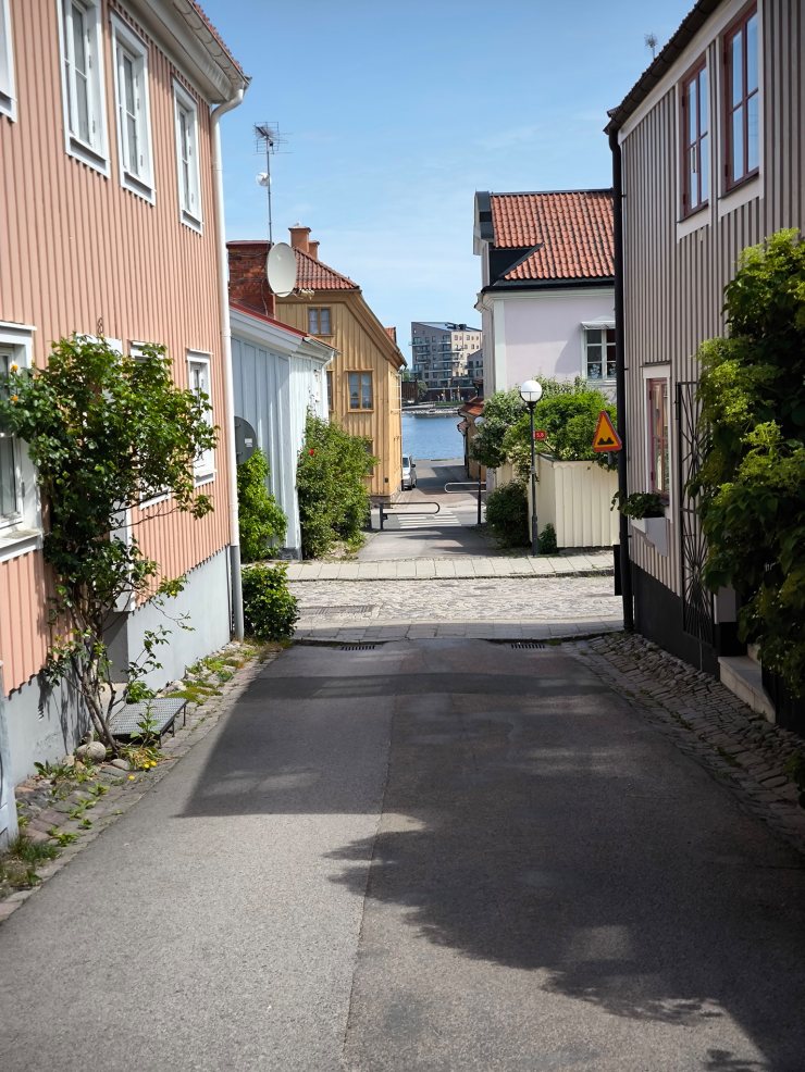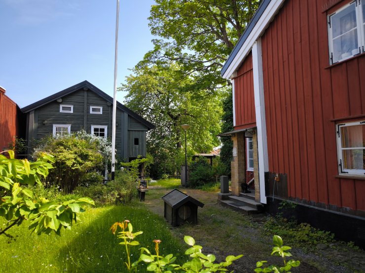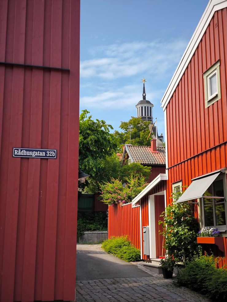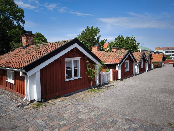 Da ich kein Boot habe, wurde der Camper auf dem grossen Parkplatz am Gästehafen geparkt, wo es paar wenige Parkplätze für Wohnmobile (mit einer Beschränkung auf 3 Stunden) gab. Västervik besuchte ich zuallererst wegen den Bootsmannshütten (Båtsmansstugorna). Diese bilden ein kulturell und historisch wertvolles Quartier im Zentrum der Stadt, gleich oberhalb des Parkplatzes. Die Gebäude wurden in den 1740er Jahren erbaut und stehen seit 1974 unter Denkmalschutz. Denn in den 1700er Jahren war die Stadt Västervik verpflichtet, eine bestimmte Anzahl von Bootsmännern zu beherbergen, die in Tjusts Bootsmannskompanie dienten. Als Unterkunft für diese wurden die Bootsmannshütten gebaut, von denen acht erhaltene Hütten Ende der 1740er Jahre gebaut wurden. Die kleinen Häuser befinden sich mit dem Giebel zur Strasse und sind einstöckig, mit Ausnahme von Båtsmannen 8, das zwei Stockwerke hat.