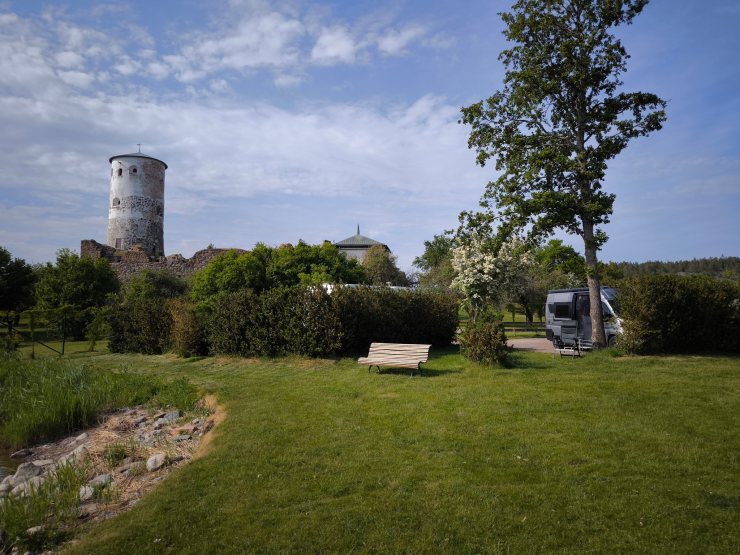 Heute Nacht bin ich auf einem der 11 „Luxusstellplätze“ an der Marina von Stegeborg unterhalb der Schlossruine. Es gibt weitere grosszügige Stellplätze auf dem Parkplatz an der Marina, alle mit Stromanschluss und Zugang zu gepflegten Servicehäusern. Stegeborgs Ställplats liegt landschaftlich reizvoll mit Blick auf die alte Ritterburg Stegeborgs Slottsruin, den Strand von Slätbaken und den Eingang zum Göta Kanal. In der Umgebung gibt es eine Badestelle mit Steg und Strand, Kiosk, Sauna zum Mieten, ein gemütliches Restaurant, Gästehafen, Wanderwege und Spazierwege. Hier in den Schären von Sankt Anna könnte man, wenn man denn ein Kanu oder ein Boot hätte, einen ganzen Urlaub verbringen!