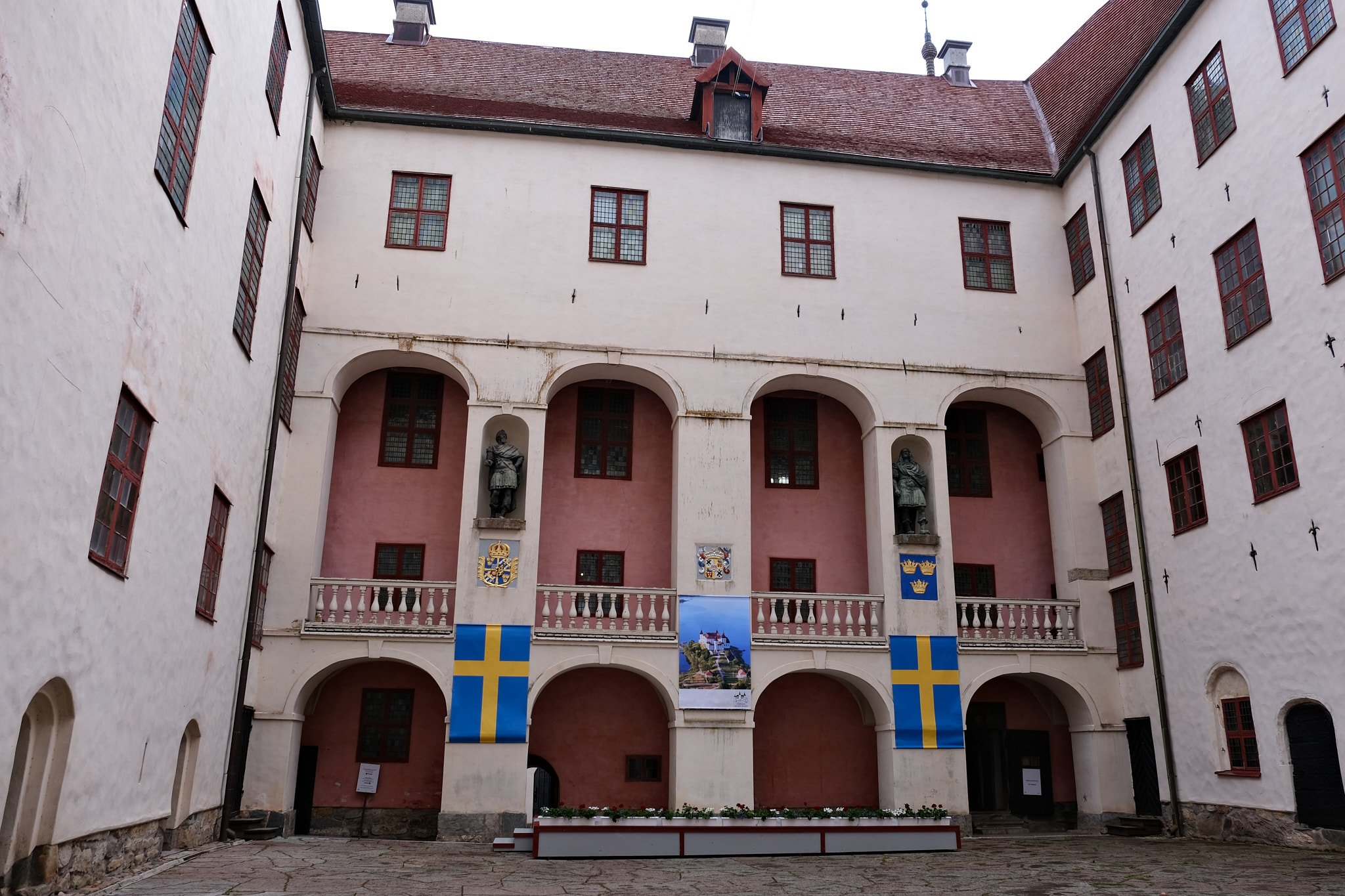 Als ich auf dem riesigen Parkplatz ankam (es gibt nur ein Tagesticket für SEK 50), schien tatsächlich die Sonne. Aber der Sturmwind war sehr kalt! Ich machte mich auf dem Weg zum Schloss, entging den Regenschauern im Schutze es Schlosses und versuchte, ein paar schöne Bilder vom Schloss und der Umgebung zu machen. Die Teilnahme an einer Führung hat mich nicht interessiert. Auch hier gäbe es durch das Naturschutzgebiet (deshalb steht hier auch ein weiteres Naturum für die Vänern-Schärenwelt) schöne Wanderwege. Aber bei arktischen Temperaturen, Sturmwind und immer wieder Regenschauern war mir auch hier nicht nach Wandern.