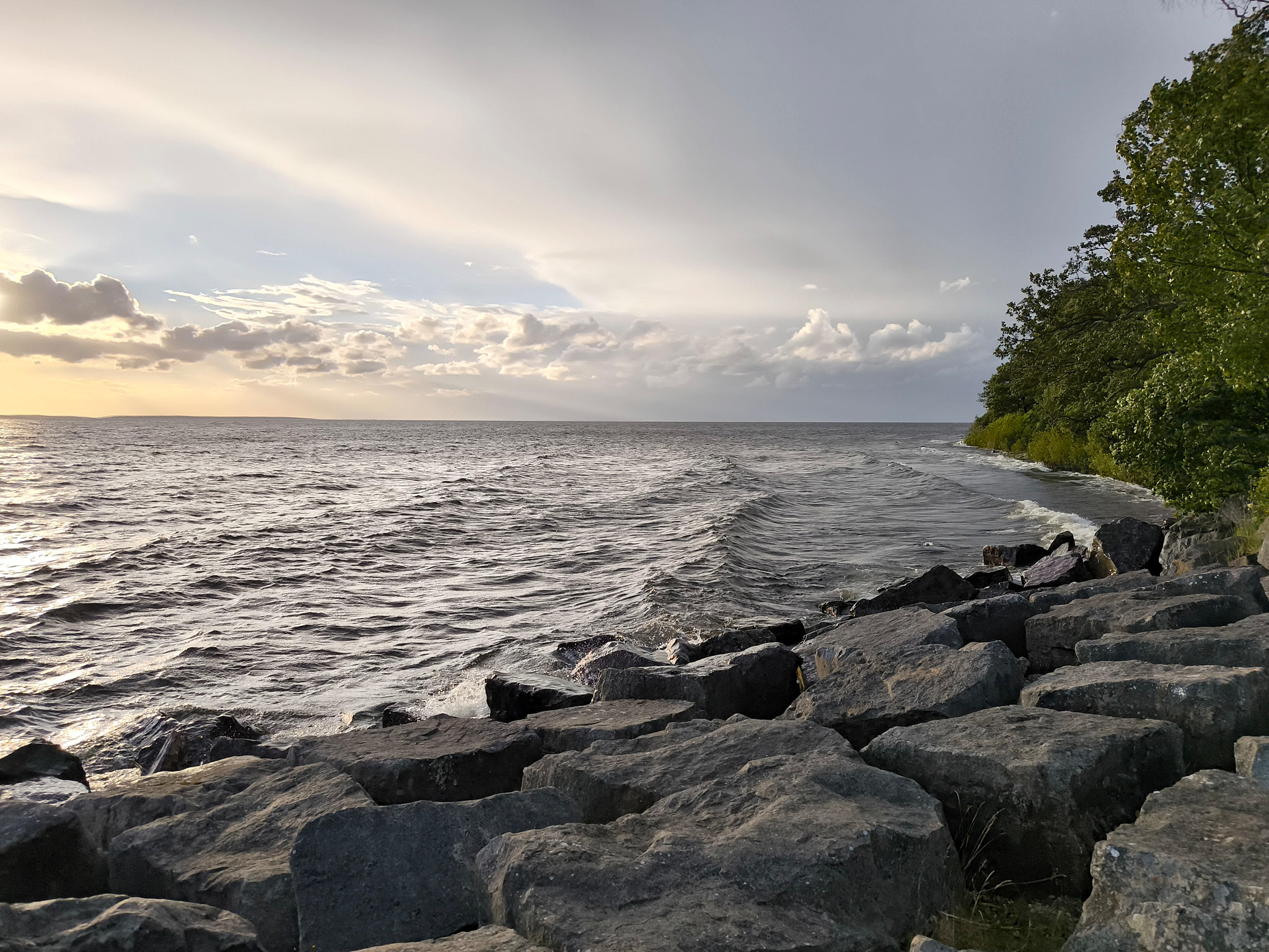 Abends habe ich mich doch nochmals warm eingepackt und ein paar Bilder von der Stimmung am See gemacht. Der drittgrösste See Europas ist schon beeindruckend. Bei dieser Brandung könnte man fast meinen, man stünde am Ufer eines Meeres! Die Bucht des Campingplatzes hat sogar einen kleinen Leuchtturm.