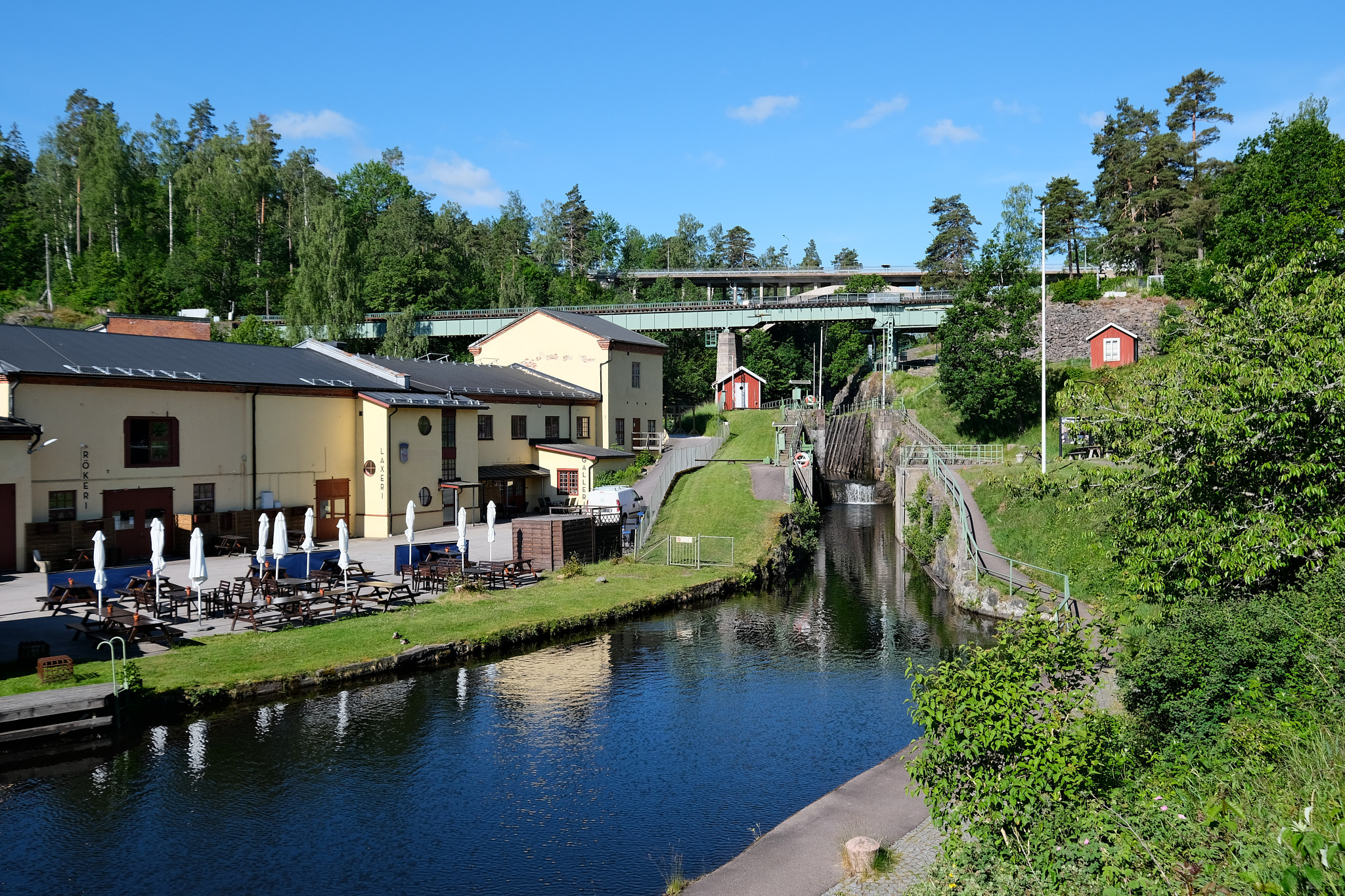 Denn Håverud ist der einzige Ort in Europa (soweit bekannt), an dem Schiffe, Autos und Züge an einer Stelle auf verschiedenen Ebenen aufeinander treffen. Und das Aquädukt des Dalslandskanals ist schon eine geniale Ingenieurslösung.