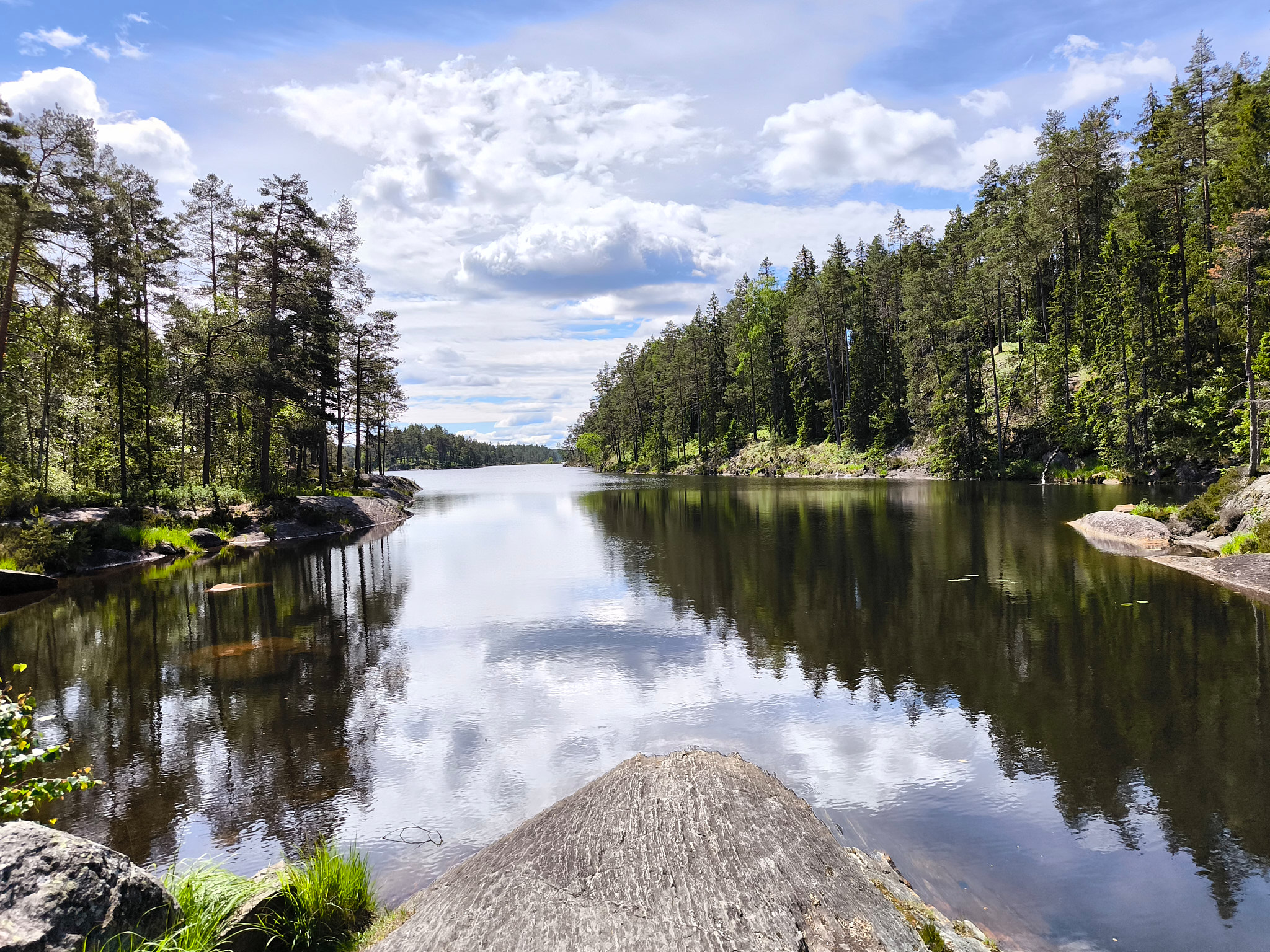 Aber zuerst möchte ich meine Wanderung im Tresticklan Nationalpark geniessen. Doch das musste ich mir hart erarbeiten. Denn die Strasse zwischen Ed und dem Abzweiger zum Nationalpark war eine 15km lange Baustelle! Die Strasse wurde komplett neu gebaut und der Verkehr wurde auf dem sehr groben Schotterbett geführt. Und natürlich kamen einem zahlreiche riesige Lastwagen entgegen. Ich wollte nichts riskieren und fuhr halt entsprechend mit etwa 40km/h. Die Stichstrasse (mit einigen Schlaglöchern) zum Nationalpark-Haupteingang (Huvudentrén) war dann schon fast wieder eine Erholung.