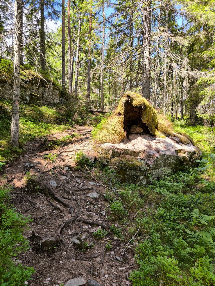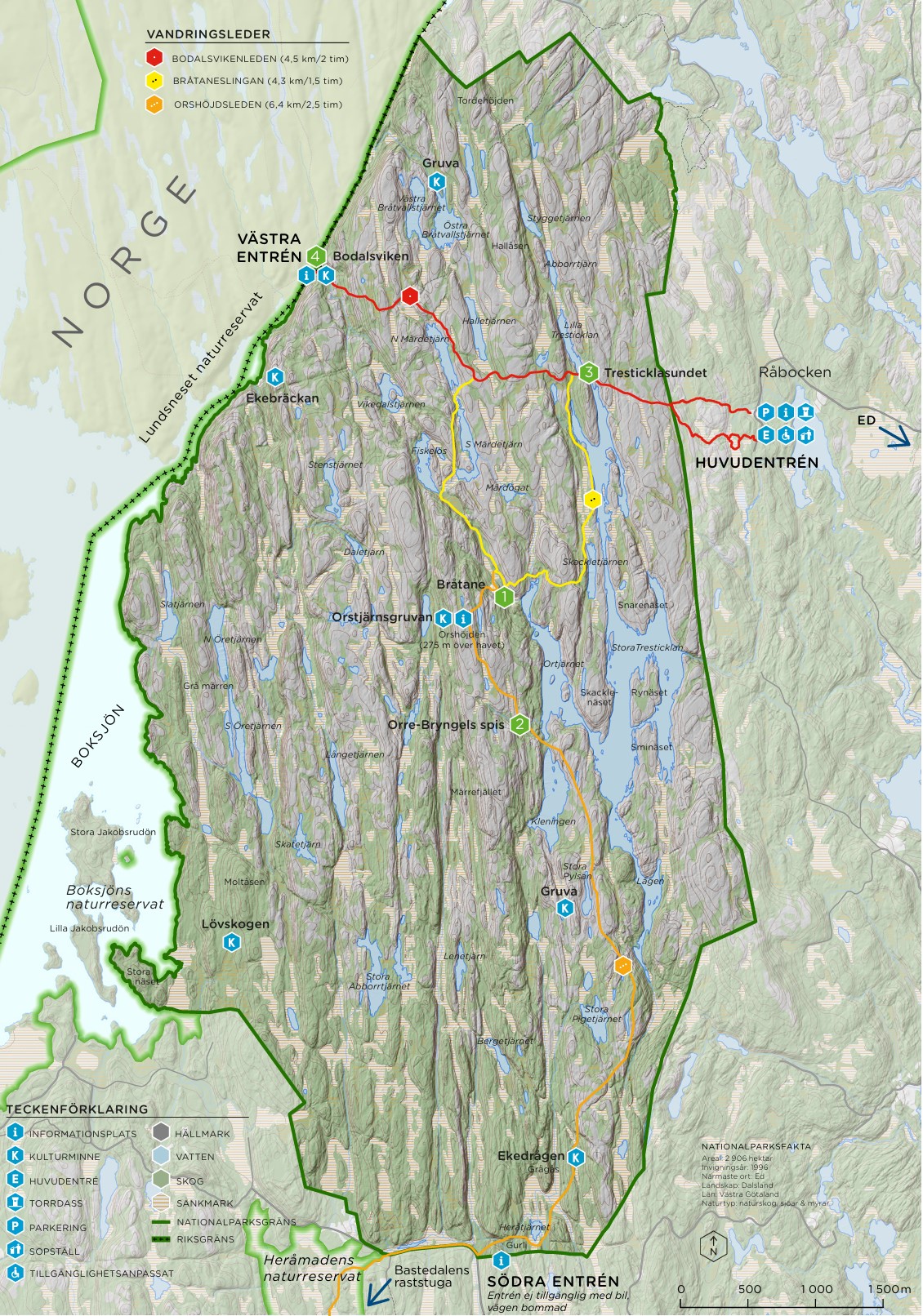 Wer dem Bodalsviken-Weg zur norwegischen Grenze folgt, bewegt sich auf dem historischen Hallevägen, der ehemaligen Handelsroute nach Fredrikshald (Halden) in Norwegen. Diese Route verlief in ost-westlicher Richtung durch das Gebiet und führte an mehreren kleineren und grösseren Höfen vorbei. Wer im Gebiet östlich des heutigen Nationalparks wohnte, nutzte diesen Weg für Handelszwecke. Ein „Ausflug in die Stadt“ von 30 Kilometern dauerte oft zwei Tage, mitsamt Übernachtung beim Händler. Die beschwerliche Reise war nicht selten mit Gefahr für Leib und Leben, Hab und Gut verbunden, da in den Wäldern Räuber ihr Unwesen trieben.