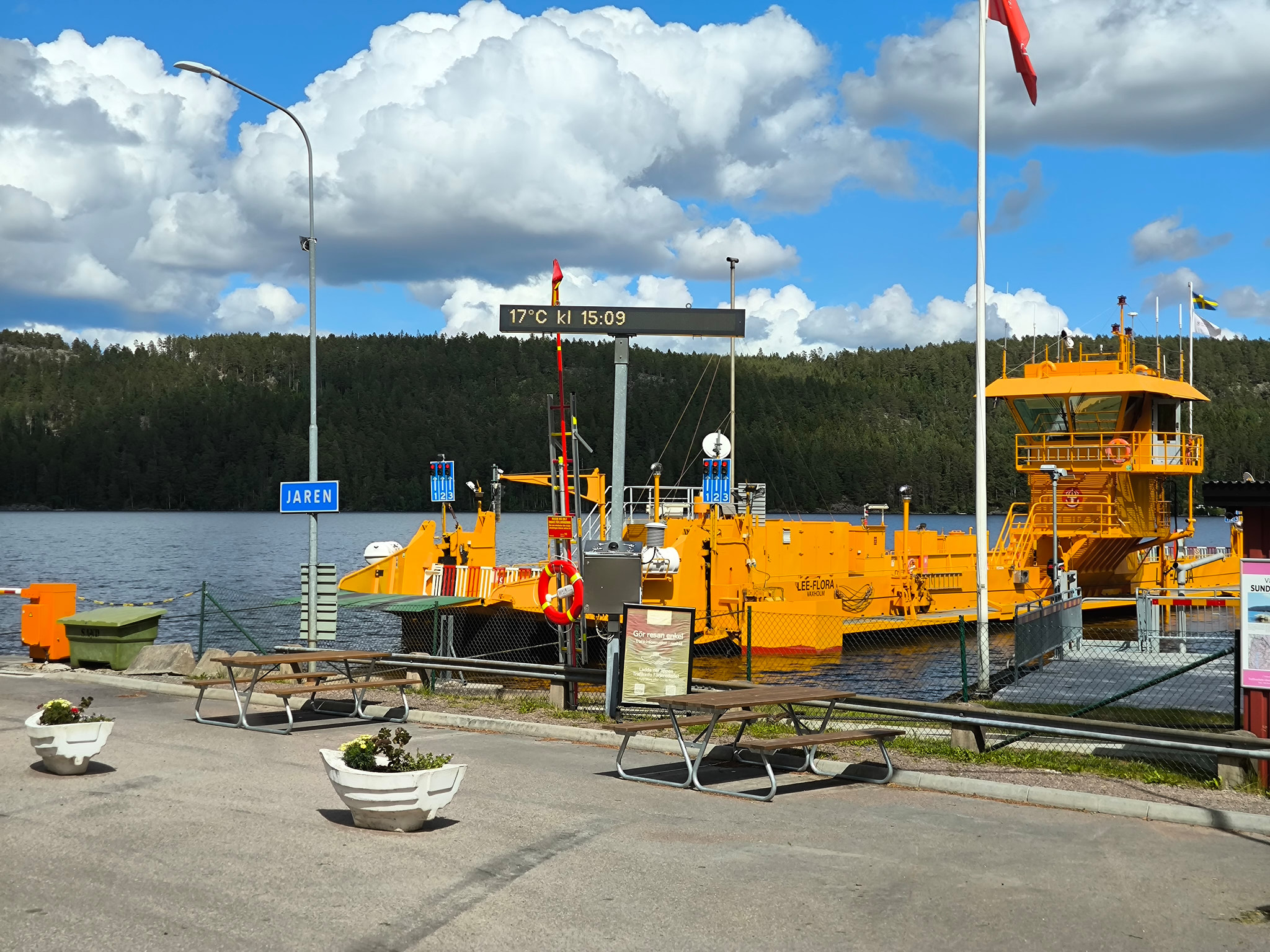 Kurz nach mir kam ein weiteres Wohnmobil an. Im Gespräch kamen wir darauf, dass es knapp 20km nördlich die Fähre Sund-Jarenleden und auf der anderen Seeseite eine Strasse zurück nach Ed gibt. Das werde ich ausprobieren, um nicht nochmals diese Baustelle erdulden zu müssen.