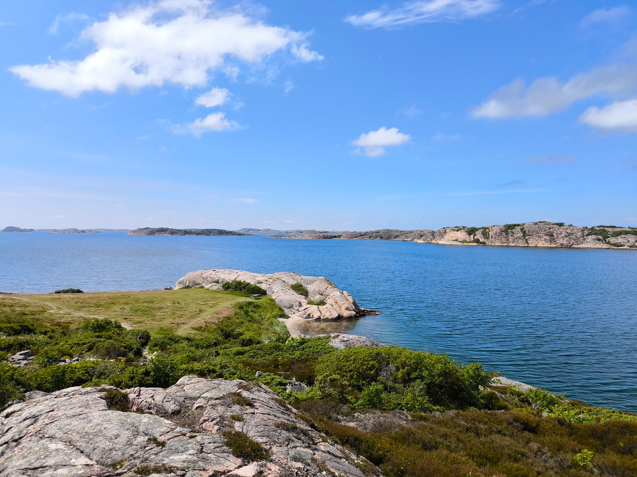 Ich fuhr zum nahegelegenen Lynnevikens Badplats, stärkte mich mit einem rasch gefertigten Sandwich und ging dann den steilen Weg rauf zum Aussichtspunkt S:t Olofs Valar, wo ich nochmals die unglaubliche Aussicht über die Landschaft geniessen konnte. Da kann ich gut verstehen, dass ANNA davon nicht genug kriegen kann.