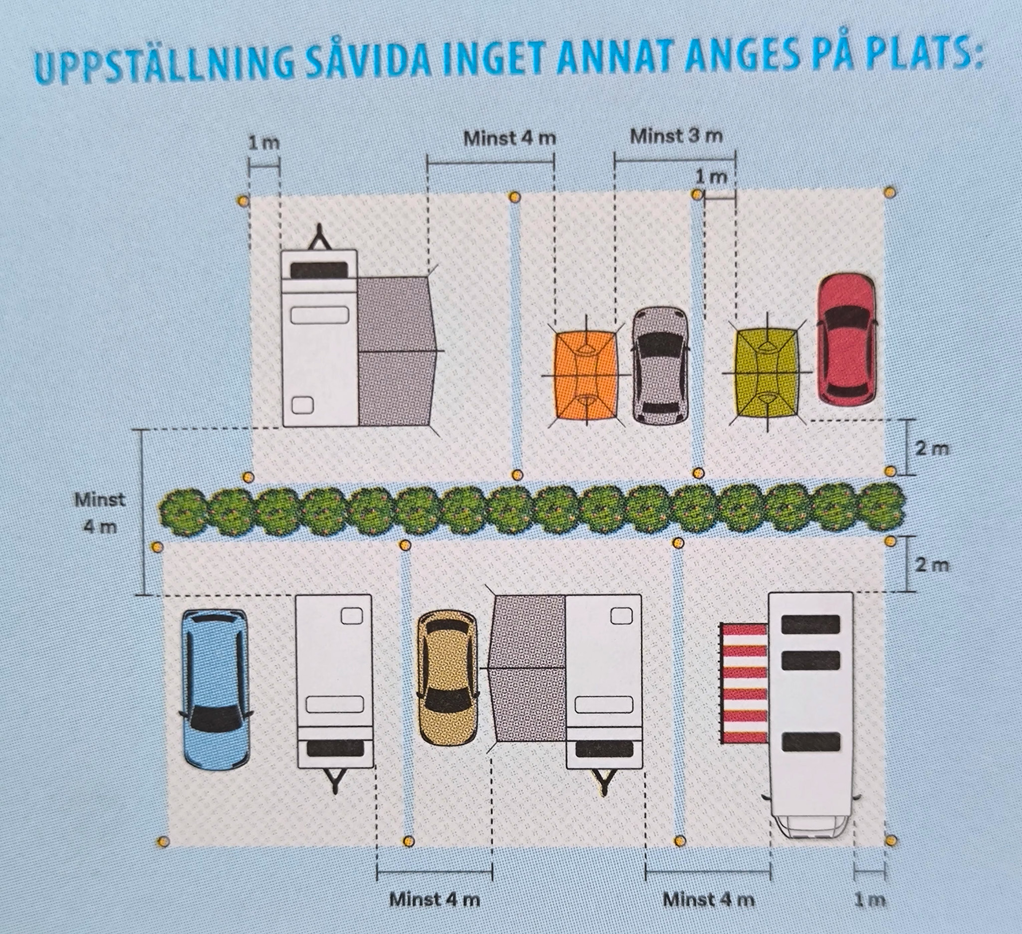 Es war heute lustig zu beobachten, wie dieses Mal die genauen genauen Aufstellregeln, welche auf allen Campingplätzen in Schweden gleichermassen erklärt werden und gelten (siehe Bild), dieses Mal vom „Platzwart“ durchgesetzt wurden. Ein paar Camper mussten ihre Wohnwagen oder Wohnmobile auf ihren den grossen, zugewiesenen Plätzen umparken. Ist es denn so schwierig, das hintere linke Rad bei der gelben Markierung zu platzieren?