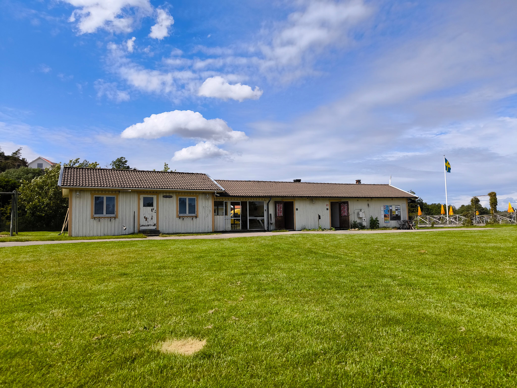 Für den Sonntag hatte ich irgendwie keinen richtigen Plan. Nach dem Frühstück entsorgte ich also zuerst das Papier und die Aludose(n) um mir mindestens einen Ansatz eines Plans vorzuspielen. Alle Pfandflaschen und Pfandaludosen (SEK 1.-) und werden als Spenden in den blauen Containern gesammelt, wenn man diese nicht an den Automaten in den Läden zurückgeben möchte. Auf dem Weg zu den Sammelcontainern konnte ich gleich miterleben, wie die zahlreichen Mitarbeiter des Platzes einen Erste-Hilfe-Kurs absolvierten. Also nach meinem Gemeckere doch noch ein Qualitätskriterium von First Camp.