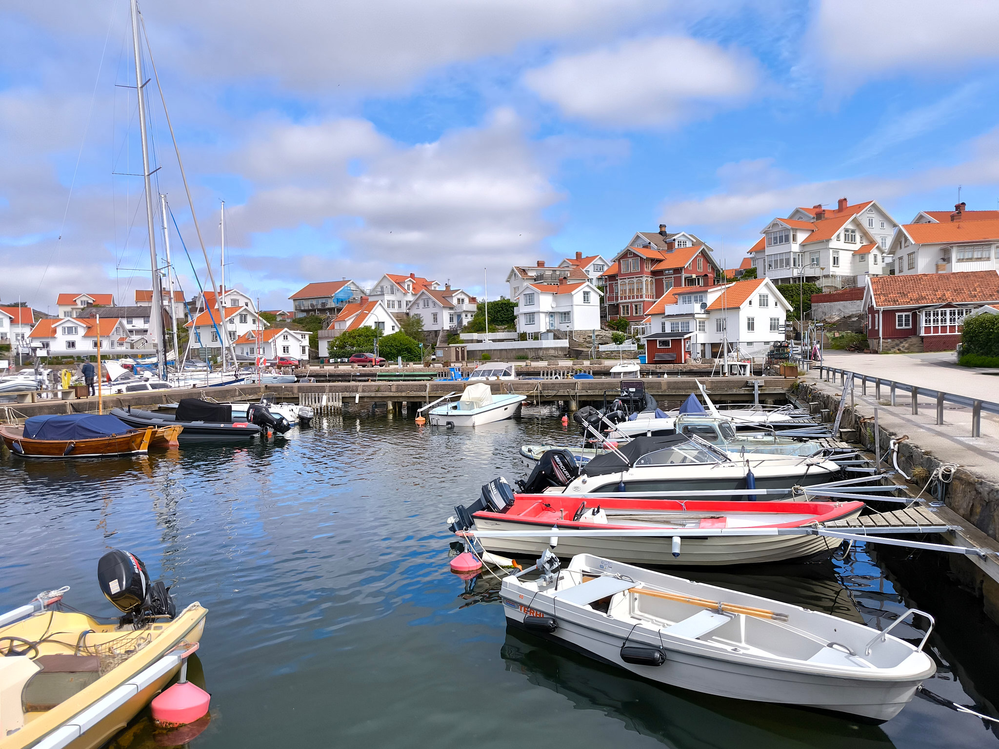 Am Montagmorgen war das Wetter wieder freundlich und ich machte mich nach Orust und Tjörn auf. Die Fähre hatte heute Morgen schon alle 30′ eine Reihe von Handwerkerautos auf die Strasse gelassen. Als nächstes war ich an der Reihe.