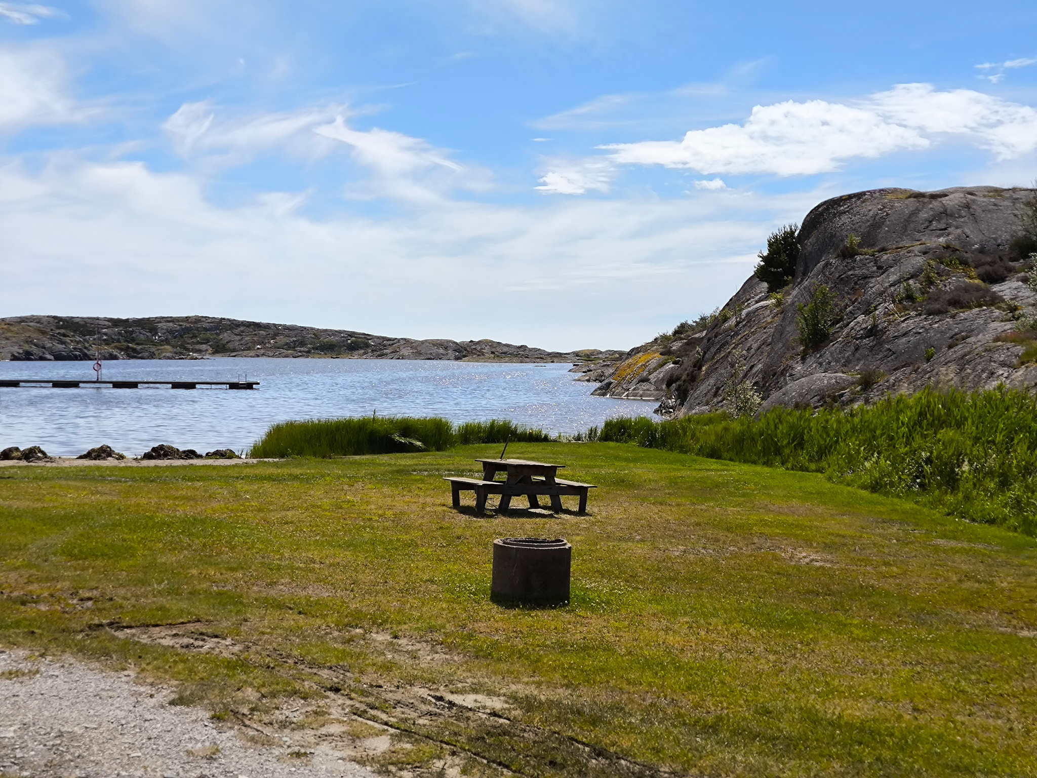 Am Mittwoch habe ich auf der Fahrt von Tanumshede nach Fjällbacka nochmals das Naturreservat Veddö besucht, da es mir das letzte Mal sehr gut gefallen hat. Vor dem Start genehmige ich eine kleine Stärkung, denn es ist nach dem Besuch der Felsritzungen schon nach 12 Uhr.