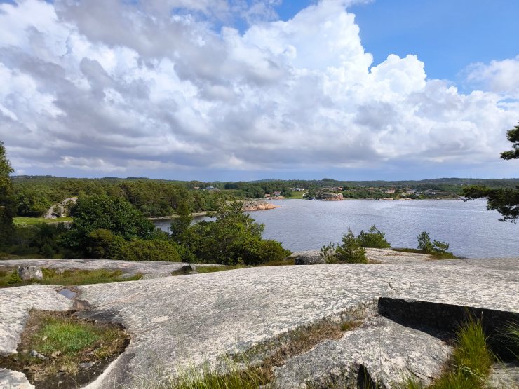 Ich fuhr zum nahegelegenen Lynnevikens Badplats, stärkte mich mit einem rasch gefertigten Sandwich und ging dann den steilen Weg rauf zum Aussichtspunkt S:t Olofs Valar, wo ich nochmals die unglaubliche Aussicht über die Landschaft geniessen konnte. Da kann ich gut verstehen, dass ANNA davon nicht genug kriegen kann.