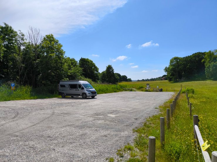 So bin ich dann kurz vor Mittag beim Camping auf Malö eingetroffen und habe dort die möglichen Plätze mit dem Besitzer angeschaut und mich für einen entschieden. Den Camper eben hinzukriegen war dann die nächste Herausforderung. Es war rasch klar, dass die Infrastruktur dieses kleinen Campingplatzes ur-uralt, aber wenigstens sauber, ist. Das scheint ja auch eine Lebensphilosophie zu sein, einen Campingplatz mit möglichst wenig Aufwand und Stress am Leben zu erhalten. Vielleicht ist das aber auch ein sehr guter Businessplan? Mit „Familjecamping“ hatte das aber nur in den 60er bis 70er-Jahre noch etwas zu tun. Heute erwartet eine Familie etwas mehr als zwei Wippen mit Autoreifen. Aber das WLAN funktioniert super! Wenigstens habe ich später doch noch herausgefunden, weshalb ich diesen Campingplatz überhaupt gebucht hatte: Er wurde im, ansonsten sehr praktischen und hilfreichen, Reiseführer lobend erwähnt. Im Reiseführer wurde auch erwähnt, dass man sich einen Platz auf der anderen Strassenseite beim Wäldchen aussuchen soll. Ich hatte mich schon gewundert, weshalb in dieser Ecke des Platzes ein deutsches Wohnmobil stand. Das nächste Mal würde ich mich wohl eher für den Campingplatz in Stocken entscheiden, welchen ich auf der letzten Reise besucht hatte.