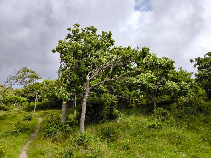Es gibt drei Rundwanderwege zur Auswahl, welche im Kern aus demselben Weg bestehen (die gelbe Runde, 8.0km) und jeweils eine kürzere Verlängerung gegen Norden (die orange Runde, 12.3km) oder eine etwas längere Verlängerung (die blaue Runde – Soteleden/Kuststigen, 14.4km) gegen Norden. Ich habe mich wegen des unbeständigen Wetters für die gelbe Runde im Gegenuhrzeigersinn entschieden.