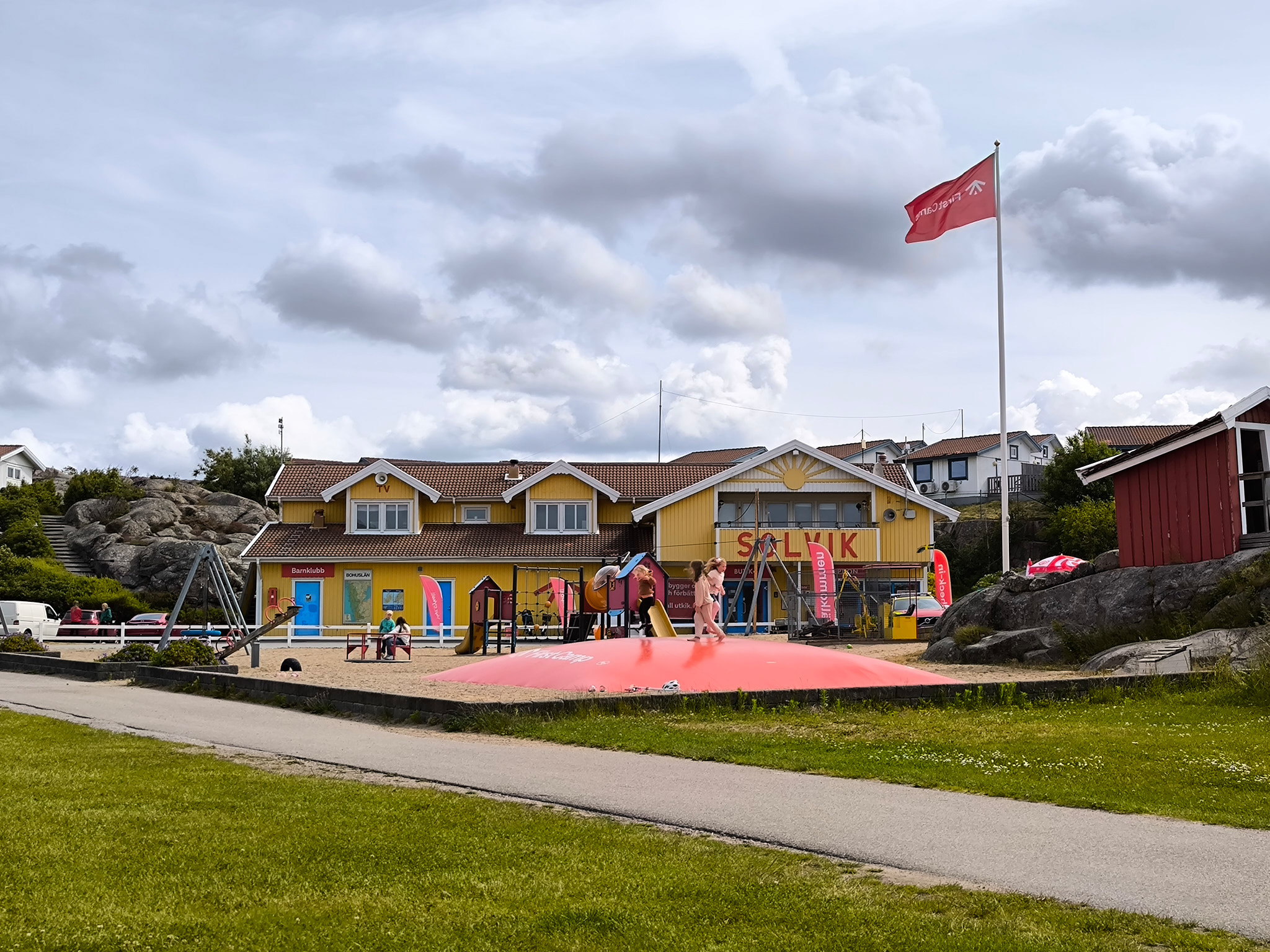Für den Sonntag hatte ich irgendwie keinen richtigen Plan. Nach dem Frühstück entsorgte ich also zuerst das Papier und die Aludose(n) um mir mindestens einen Ansatz eines Plans vorzuspielen. Alle Pfandflaschen und Pfandaludosen (SEK 1.-) und werden als Spenden in den blauen Containern gesammelt, wenn man diese nicht an den Automaten in den Läden zurückgeben möchte. Auf dem Weg zu den Sammelcontainern konnte ich gleich miterleben, wie die zahlreichen Mitarbeiter des Platzes einen Erste-Hilfe-Kurs absolvierten. Also nach meinem Gemeckere doch noch ein Qualitätskriterium von First Camp.