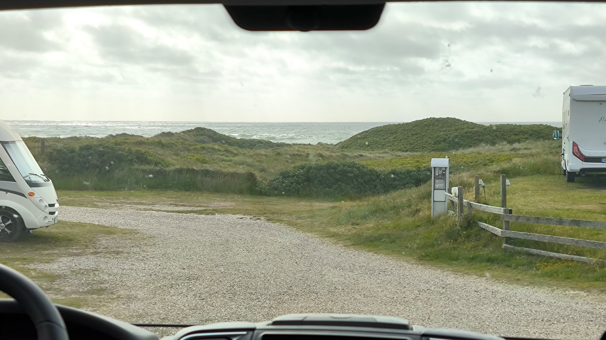 Hier im Vorupør Camping ist alles digital, es ist kein Personal anwesend. Man kauft im unbedienten Servicegebäude eine Prepaid-Karte, wo Strom (nach Verbrauch), Küche (Kochstelle für 30′ teure DKK 20, allerdings kostet die Mikrowelle und der Abwaschplatz nichts), Dusche (nach verbrauchten 45″-Intervallen) abgerechnet wird. An Stromsäulen muss man für seinen Stromanschluss die Prepaid-Karte reinstecken und pro 3kWh einen Betrag abbuchen. Ich bin ja gespannt, was mein Stromverbrauch kosten wird. Wenigstens kann man den Restbetrag im Servicehaus rückbuchen lassen. Lustig ist, dass es entgegen der Beschreibung doch ein WLAN hat, das bis zu meinem Platz reicht. Und es ist gratis!