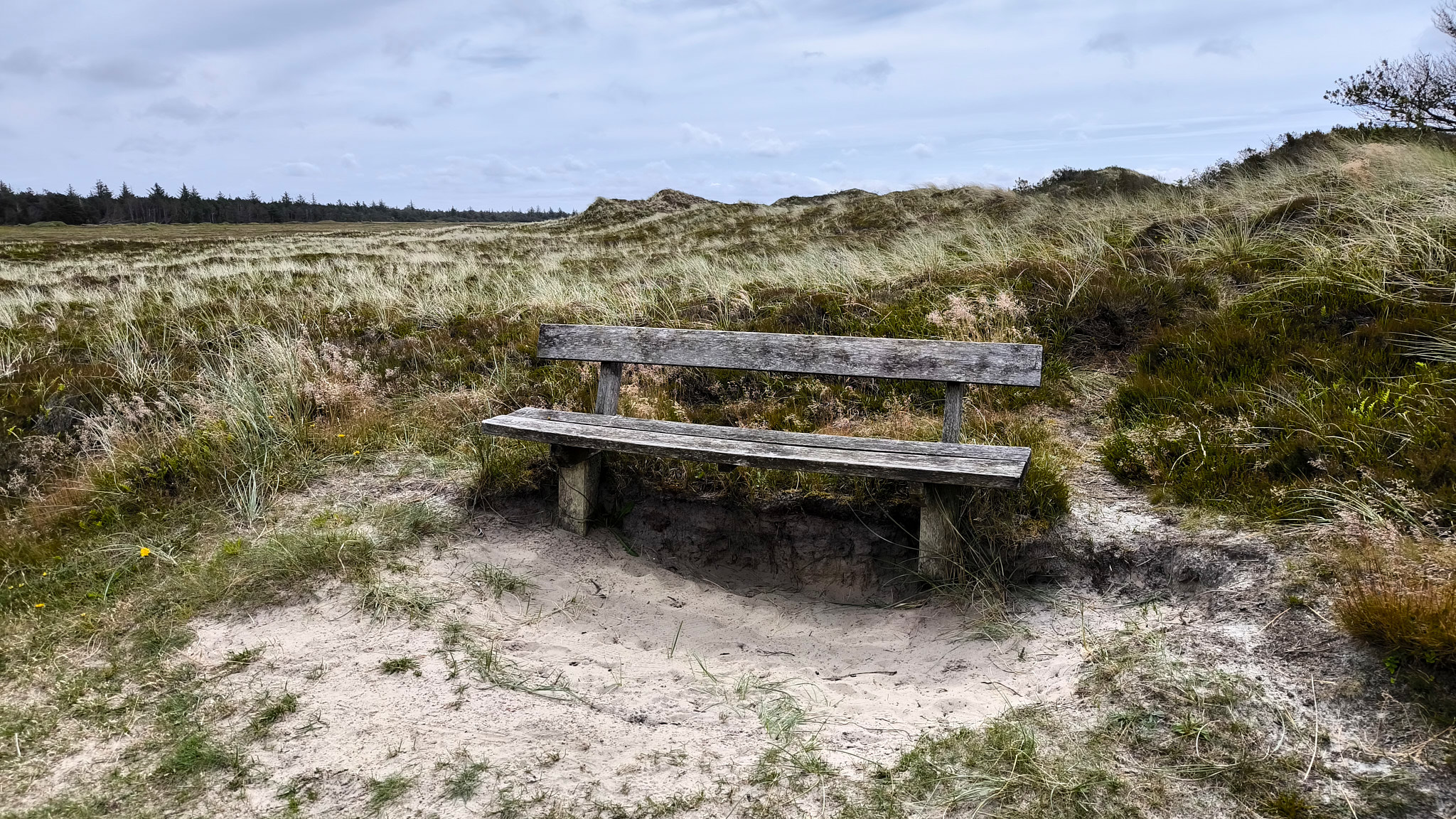 Den trockenen, weiterhin windigen Tag wollte ich heute mit einer selbst zusammengestellten Wanderung geniessen. Nørre Vorupør liegt ja mitten im Nationalpark Thy mit sehr vielen markierten Wanderwegen und noch viel mehr unmarkierten Wegen. Der Nationalpark Thy bietet viele Naturerlebnisse: Von Agger Tange im Süden, wo Zehntausende von Zugvögeln rasten, bis zum Wildreservat Hanstholm im Norden, wo die Rothirsche röhren. Aber warum in die Ferne schweifen, wenn ich das Wohnmobil einfach stehen lassen kann und direkt vom Campingplatz starten kann?