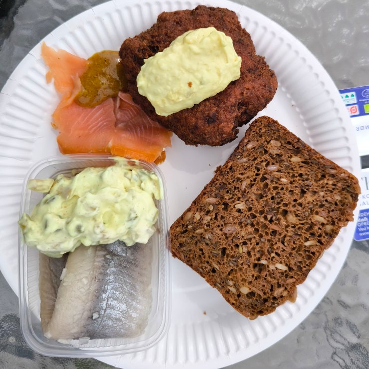 In Nr. Vorupör angekommen, war praktischerweise gerade Mittagszeit. Daher kaufte ich mir in der kleinen Vorupør Røgeri eine „Platte mit allem“ (geräucherter Lachs, Fischfrikadelle, Matjes, Brot) bei der freundlichen Inhaberin und genoss diesen Lunch vor dem Laden. Gerade gegenüber im Blick war das Nationalparkzentrum Thy, welches man mit sehr, sehr viel Beton in die Düne gebaut hat. Gleich daneben der sehr funktionale Bau des Nordsø Akvariet (Nordseeaquariums). Mein Pfad führte danach aber über einen Schleichweg durch die Dünen zurück zum Campingplatz. Hier hatte ich mir doch einen schönen Bialetti-Mokka verdient, oder?