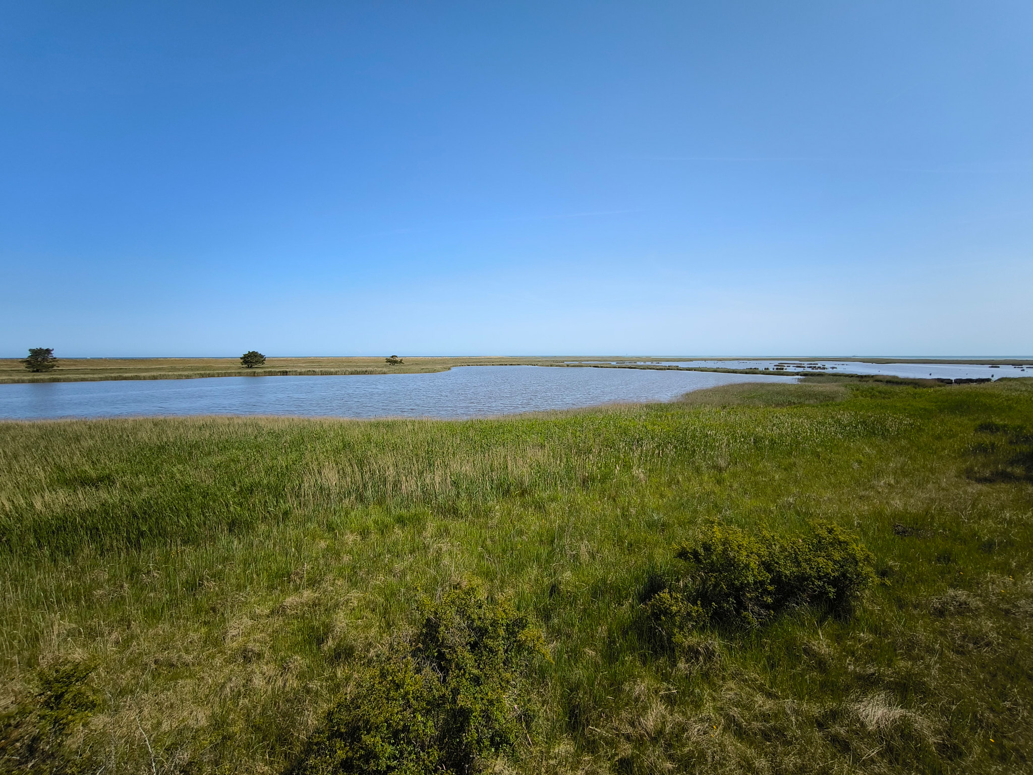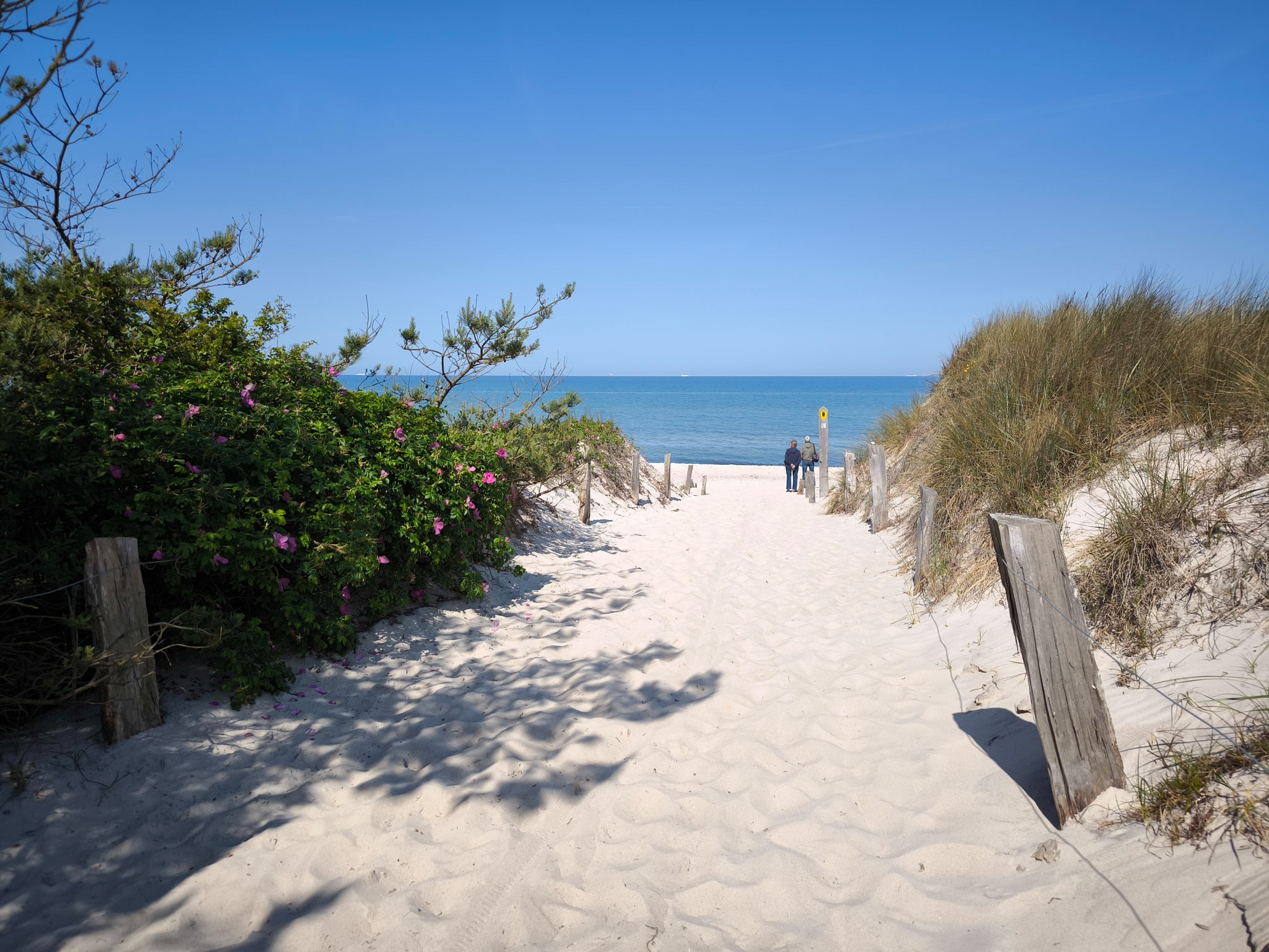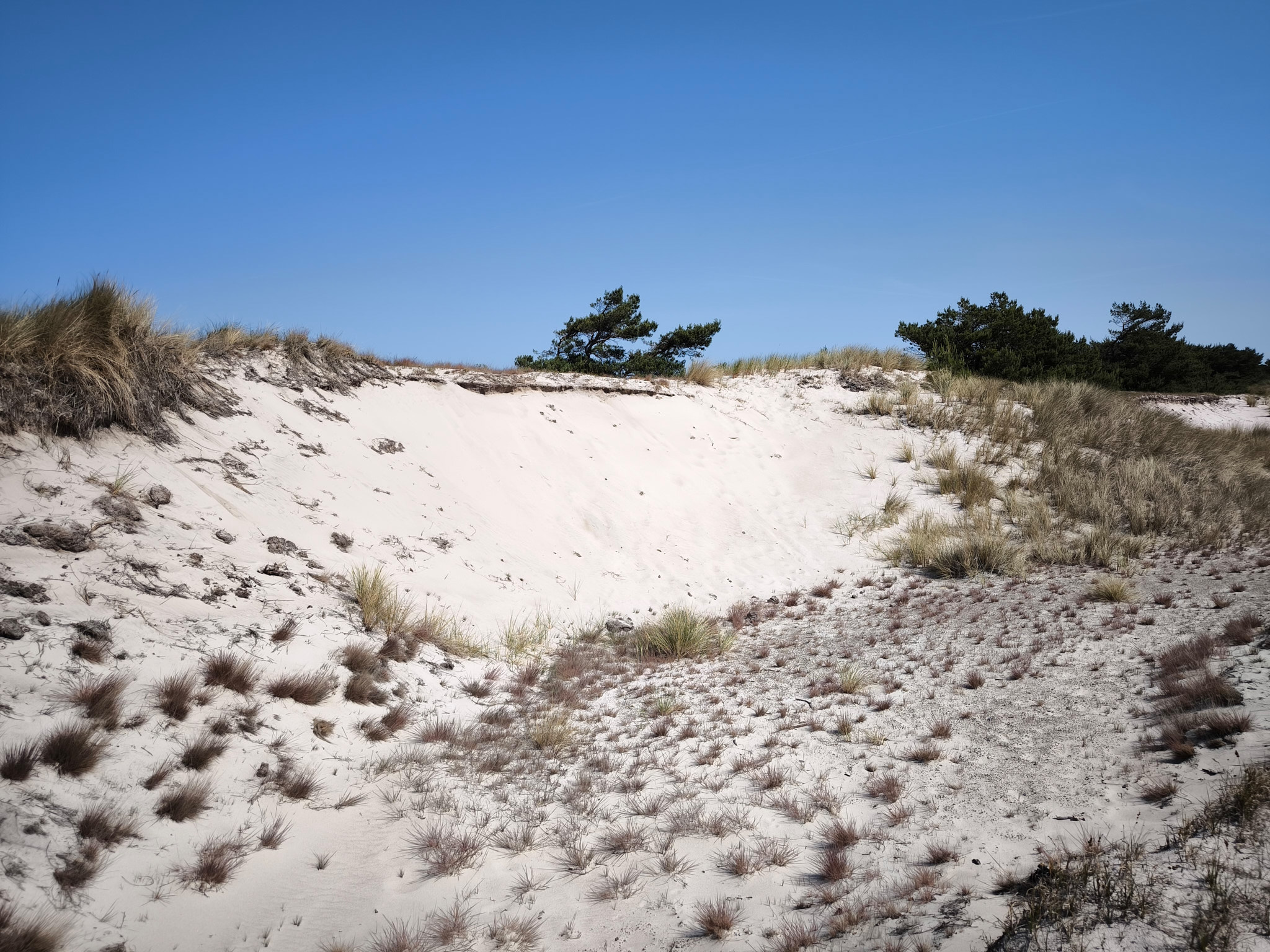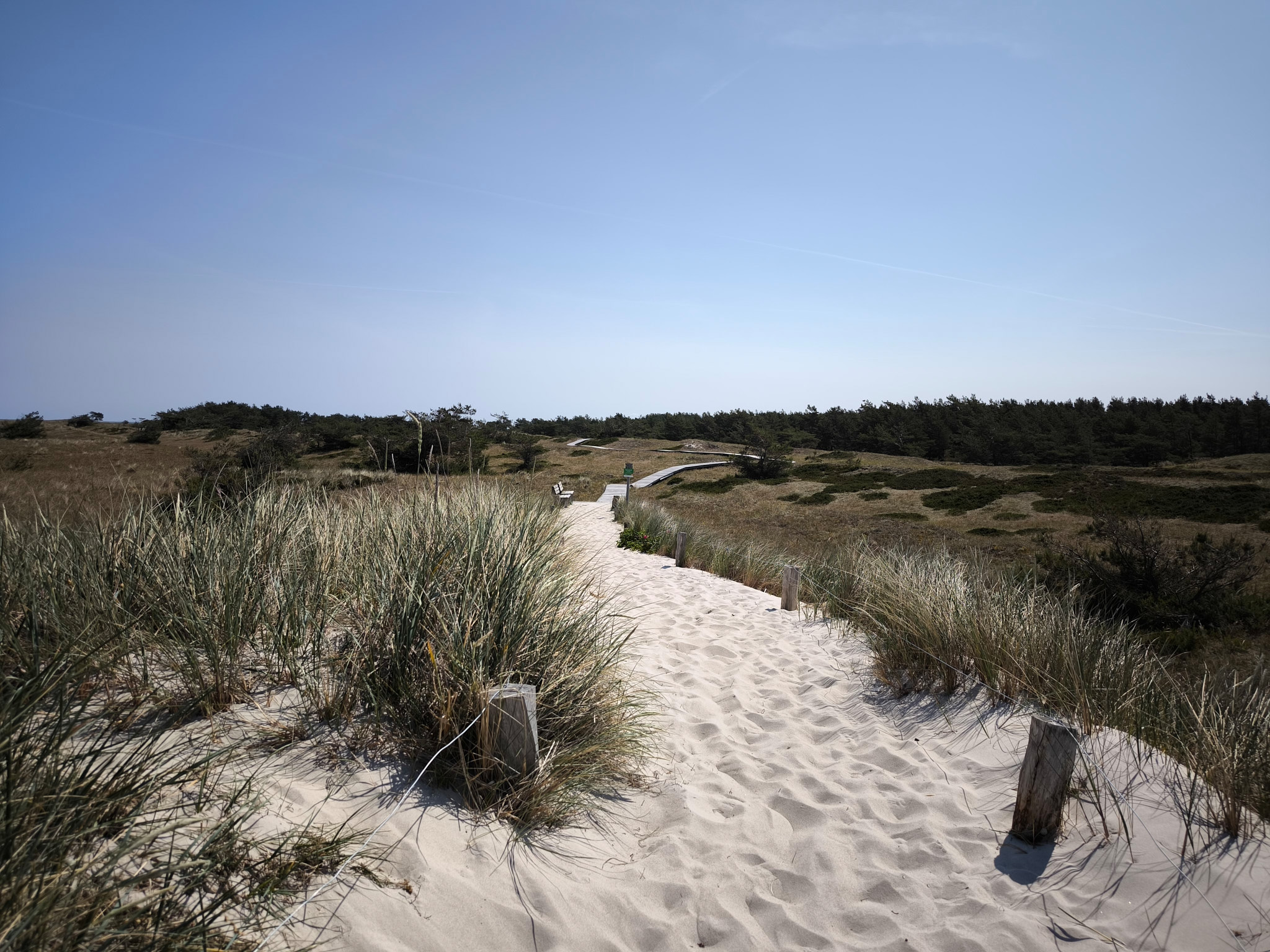 Nun wird es richtig schön, denn es geht auf einem abwechslungsreichen Weg durch die Dünen mit wunderbaren Ausblicken und mehreren Aussichts- und Vogelbeobachtungstürmen auf die andere Seite des Darsser Orts. Der Weg ist ziemlich beliebt, denn besonders auf dem letzten Abschnitt kommen mir einige Leute entgegen!