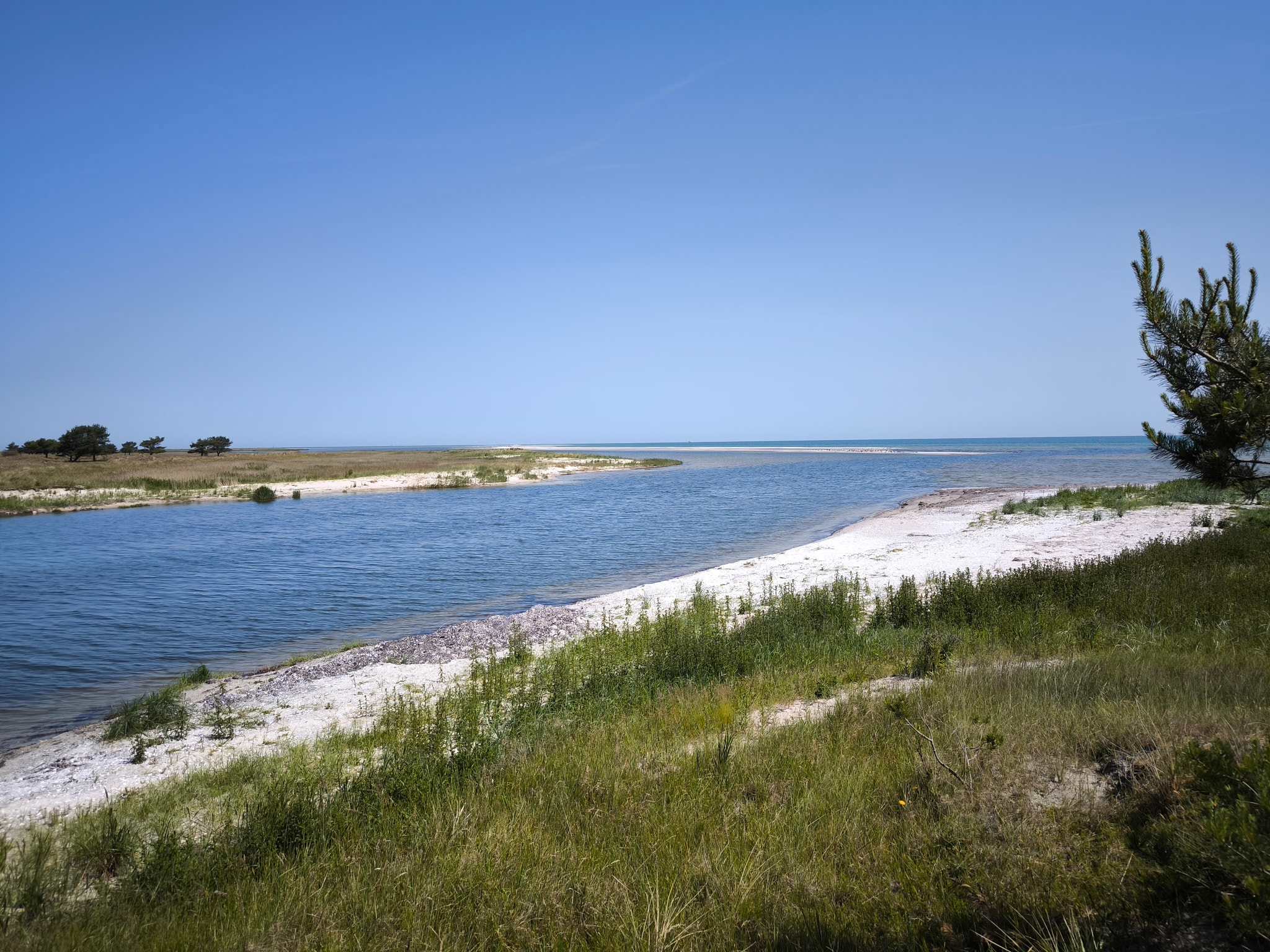Nach gut einer Stunde bin ich beim Leuchtturm angekommen. Hier kann man ab 10 Uhr auf den Leuchtturm und von oben die fantastisch urtümliche Gegend überblicken, das Natureum besuchen und auch dem Museums-Café einen Besuch abstatten. Von dort geht rund einen Kilometer den Strand entlang bis zum abgesperrten Gebiet des Nationalparks.