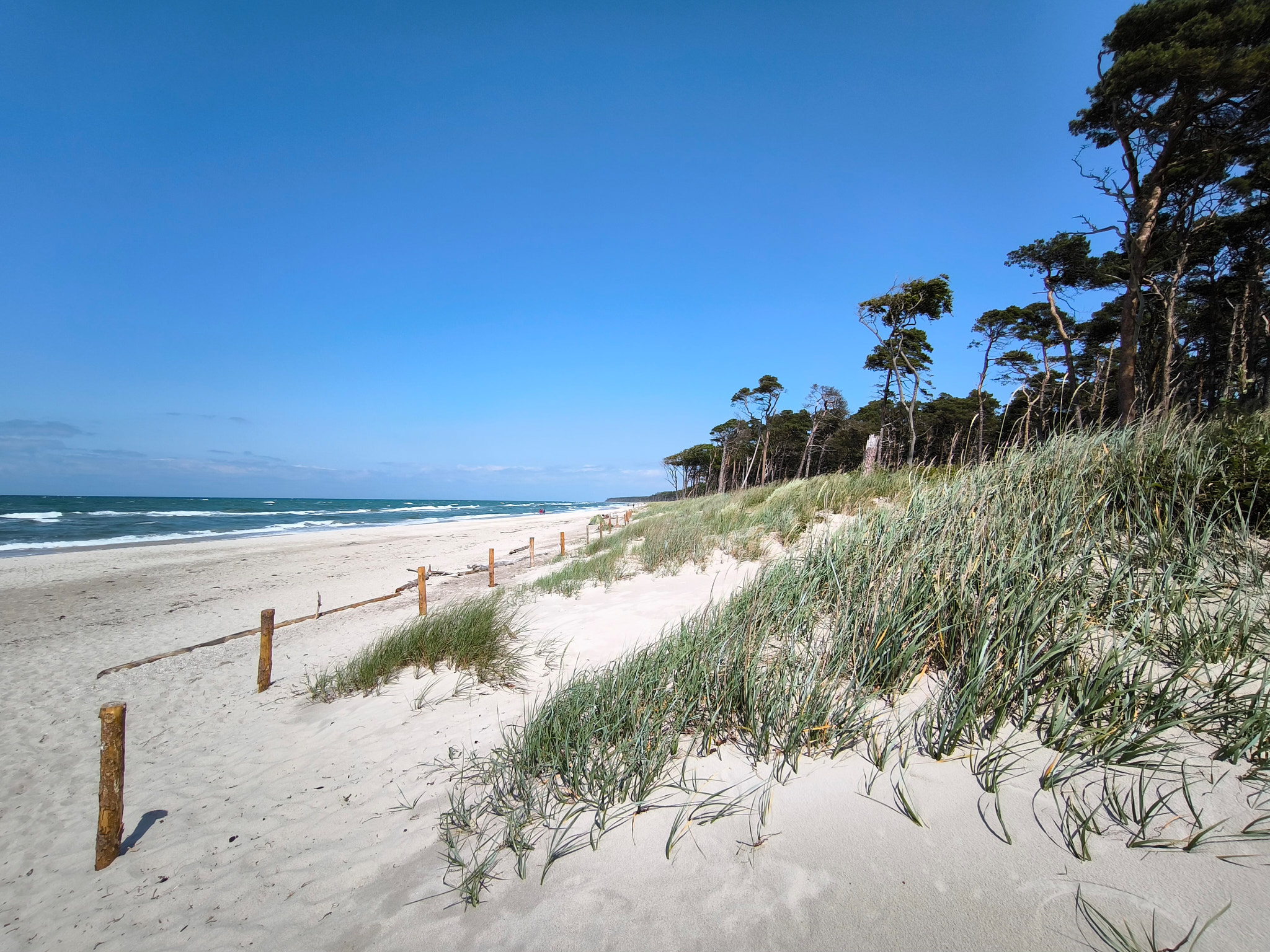 Doch natürliche Dünen sind selten an der deutschen Ostseeküste. Damit höhere und ausgedehnte Dünenfelder entstehen, muss das Meer genügend Sand liefern, den der auflandige Wind vom Spülsaum zu den Dünen aufweht. Im Nationalpark können sie sich natürlich entwickeln, wie zum Beispiel die grösseren aktiven Dünen am Darsser Ort oder bei Pramort.