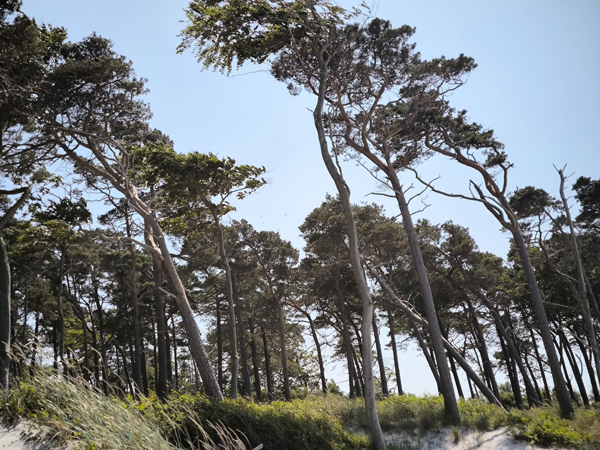 Kaum habe ich darüber nachgedacht, stehe ich schon Weststrand! Ich bewundere nochmals die Kiefern und die Wellen am Strand. Das ist heute eine ganz andere Szenerie als letzten Freitag (siehe mein Blogbeitrag). Jetzt sind die Strandwanderer gut in Outdoorjacken eingepackt und die wenigen Strandbesucher verziehen sich in ihre Strandmuscheln.