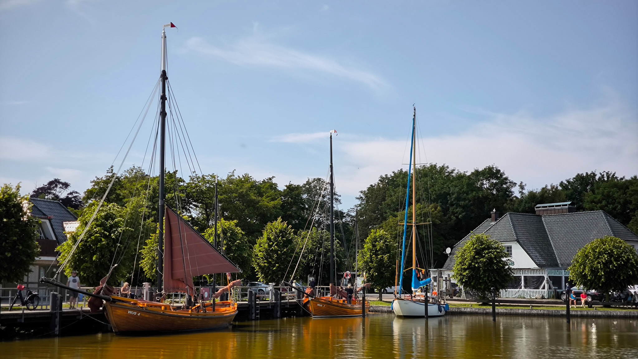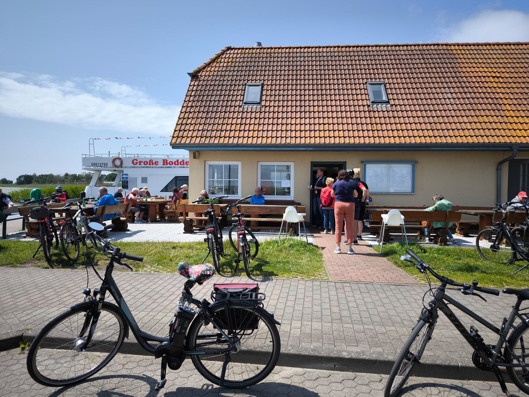 So konnte ich mich aber an der Sonne aufwärmen und die Einfahrt von zwei Zeesenbooten sowie eines grossen Kursschiffes beobachten. Ich wunderte mich, wie es dieses durch die schmale Einfahrt schafft. Das Kurschiff bietet die einmalige Gelegenheit, dass man eine Strecke mit dem Schiff fahren kann und den Hin- oder Rückweg dann mit dem Fahrrad absolvieren kann!