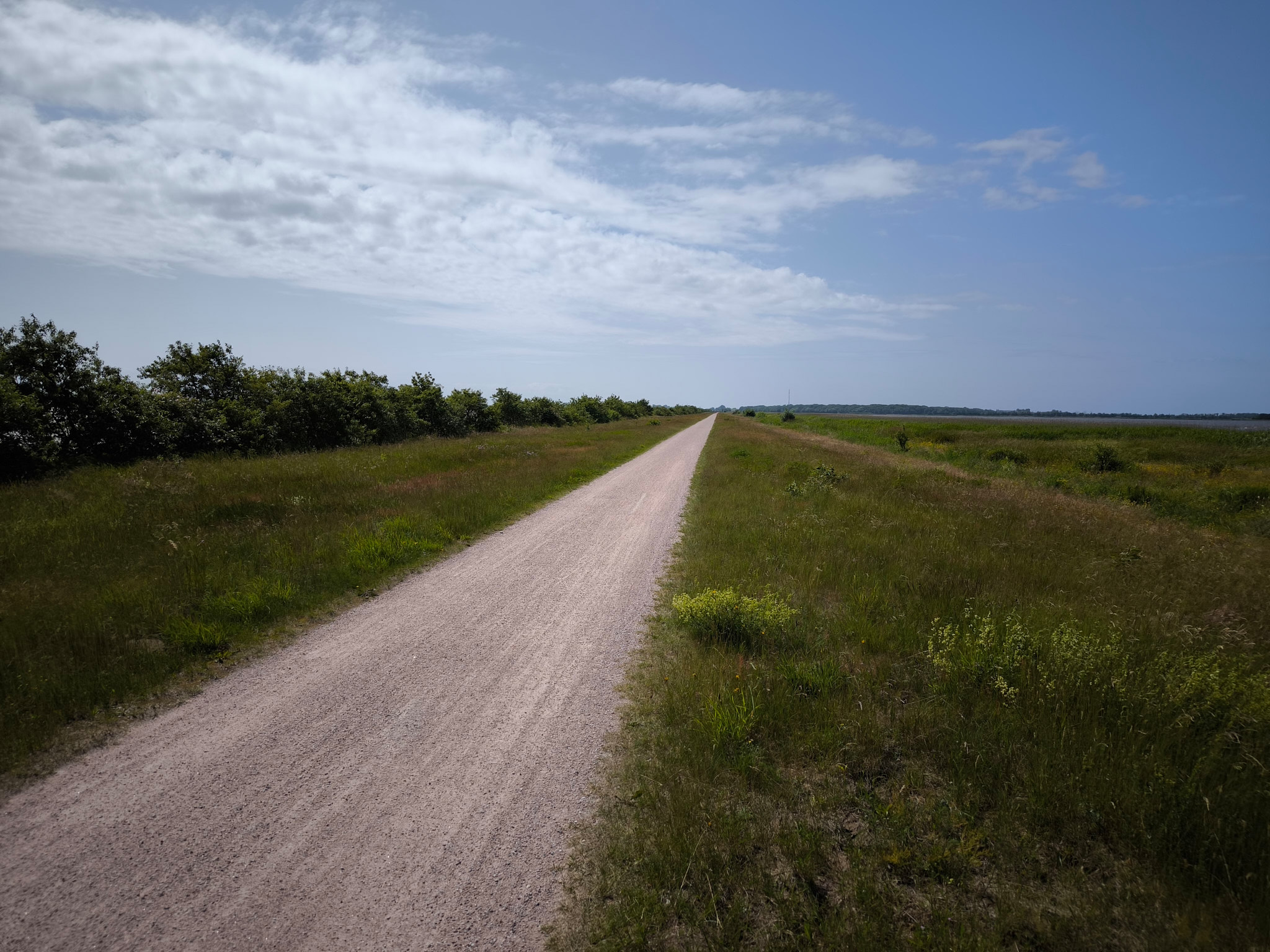Es geht ganz schön in die Oberschenkel, als ich auf der offenen Fläche und dem geraden Weg direkt gegen den Westwind mit 40km/h ankämpfen muss. Da haben die mir entgegenkommenden Radfahrer natürlich gut lachen, wenn sie vom Wind geschoben werden.